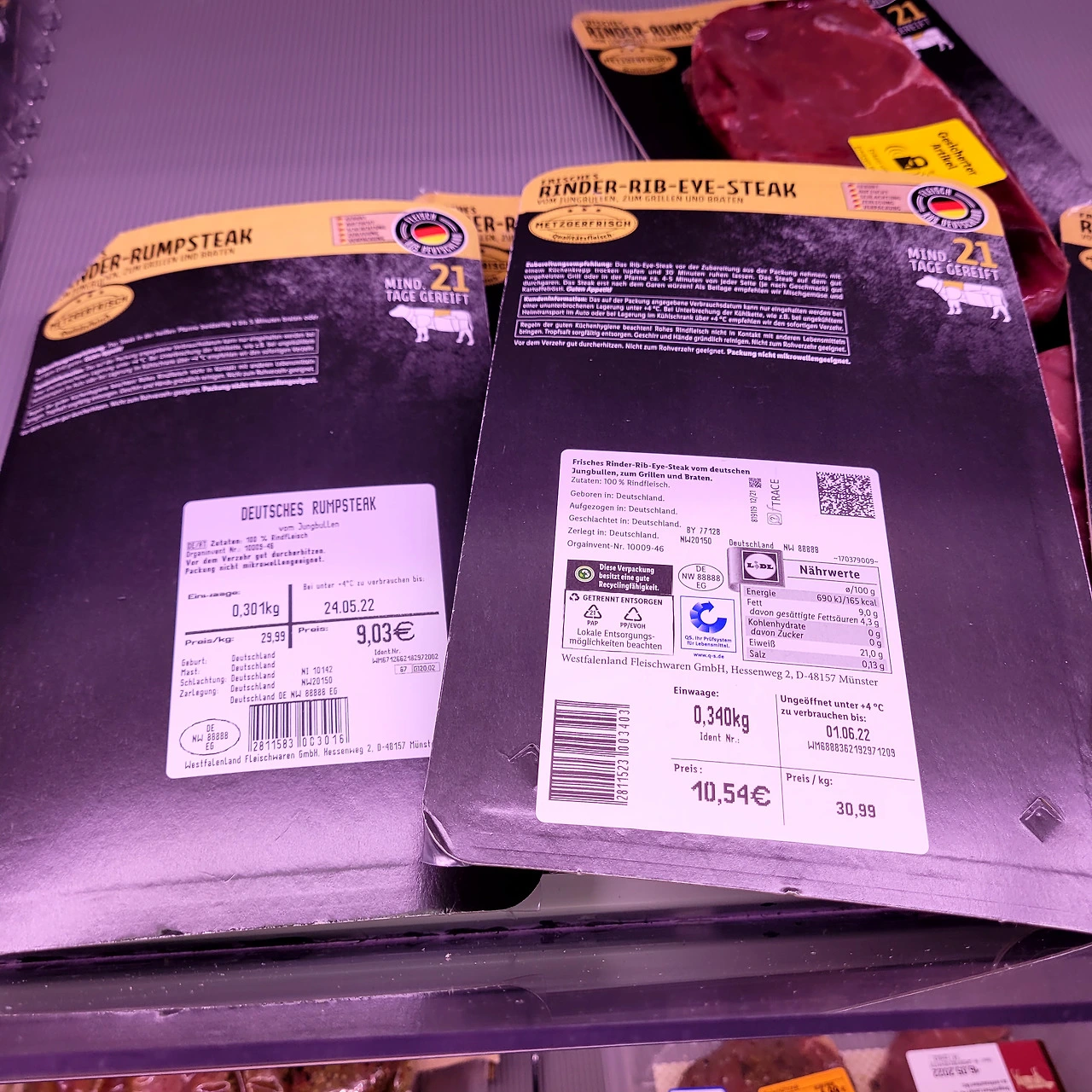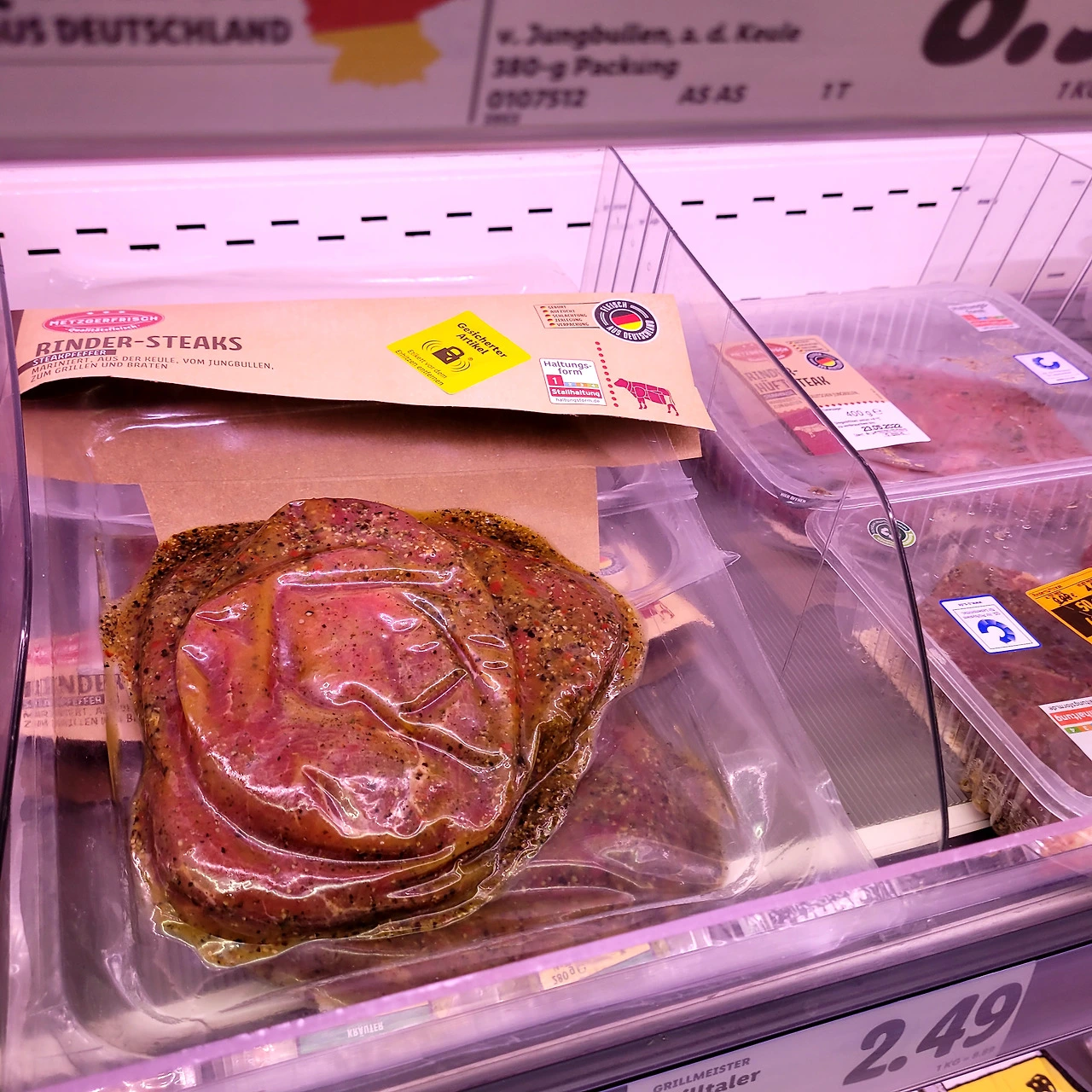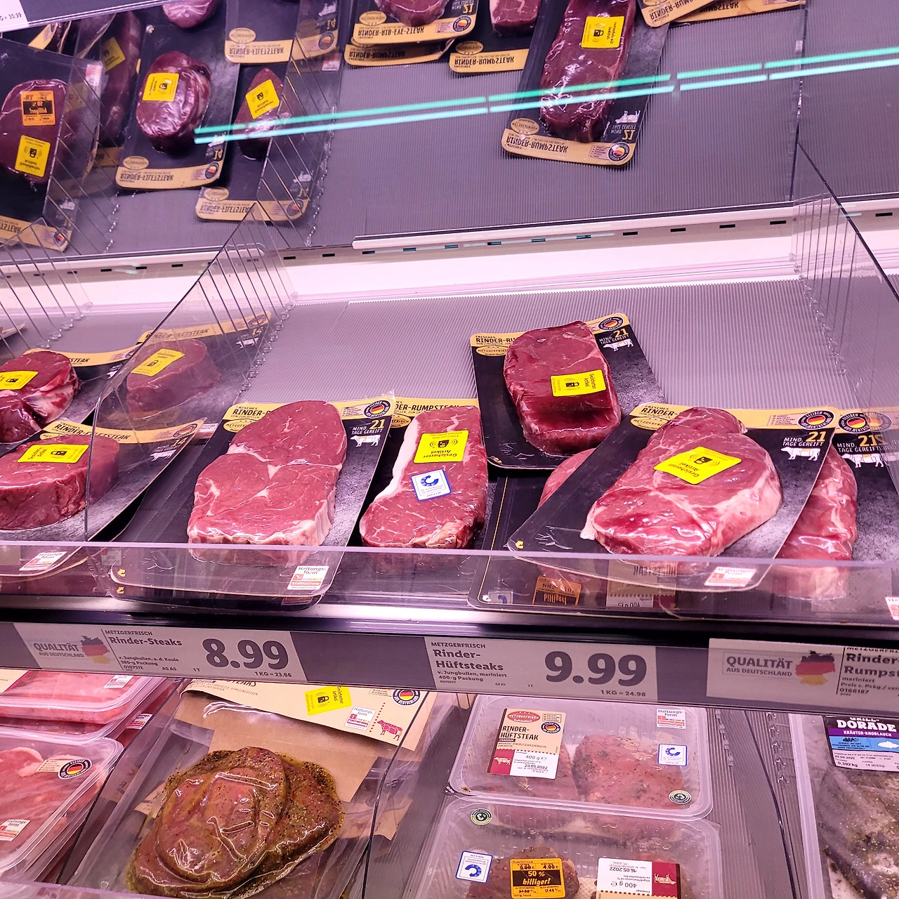 종이를 활용한 MAP(가스치환포장), 페이퍼보드 스킨포장(진공스킨포장)의 상품이 진열되어 있는 것도 확인할 수 있었습니다. 환경보호의 일환으로 종이패키지의 도입 및 서머폼 포장기법은 "기계의 나라, 독일"에서는 어느 리테일을 가도 쉽게 볼 수 있는 풍경이었습니다. 가격이 싼 것 같긴 합니다.