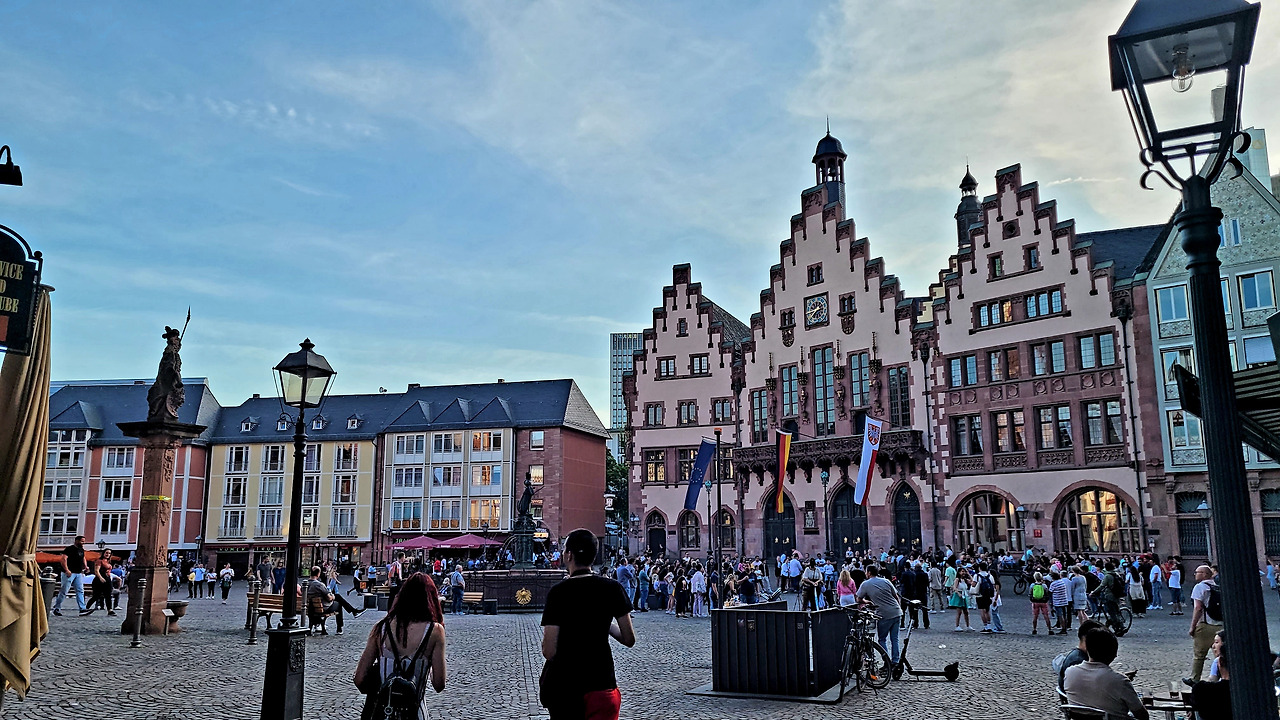 뢰머광장은 프랑크푸프트 구시가지의 중앙에 위치한 광장입니다. '뢰머(로마인)'라는 이름을 가지게 된 것은 고대 로마인들의 정착으로부터 전해진 것이며, 중세 시대의 건물들이 몰려 있습니다. 건물마다 특이한 형태를 지니고 있으며, 색상도 독특합니다. 뢰머광장으로 향하는 길에 지어진 건물들은 중세와 현대의 조화로움을 보여주고 있습니다.