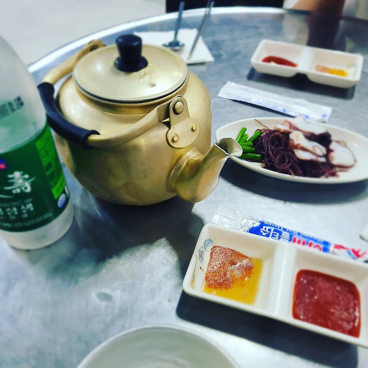 서비스로 나온 문어숙회와 삼겹살에 젓가락이 자주 가는 아들을 보며, 재미있단 생각이 들었다.