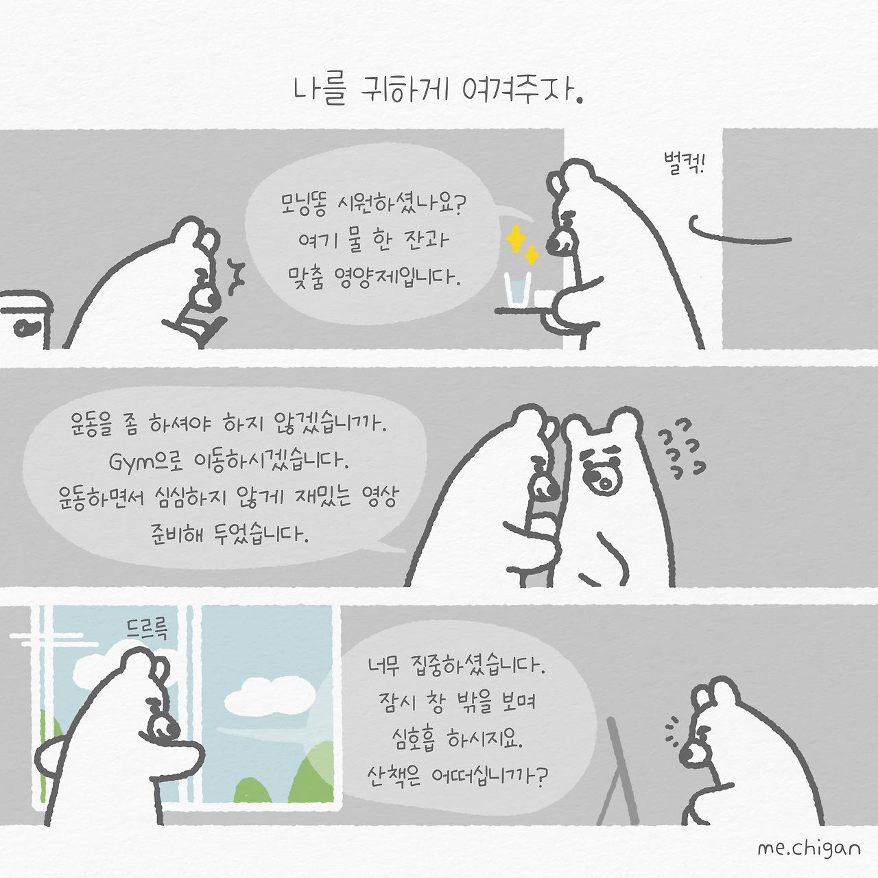 어느 육아서에서는 '아이를 손님 대하듯 하라'라고 했는데 때로 '나'에게도 그럴 필요가 있는 것 같습니다. 아니 손님은 방문했다가 떠나기라도 하지, 나는 붙박이처럼 옆에 있으니 주인이나 사장님 모시듯 하는 것이 좋을 것 같습니다. 나는 '나'를 운영하는 최고경영자 'CEO'니까요.