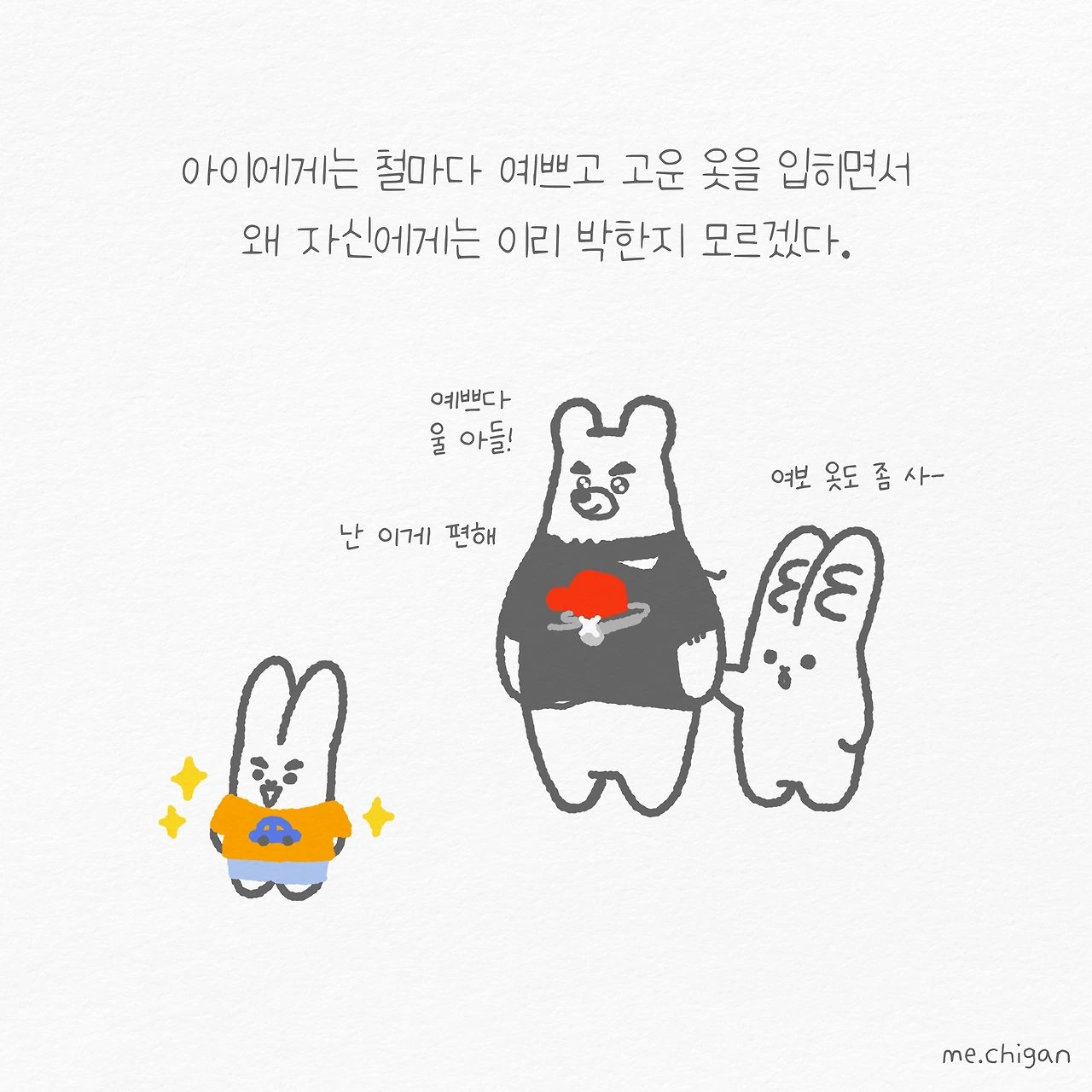 변명하자면 아이가 생기기 전에는 이 정도는 아니었던 것 같아요. 아이를 키우고 미국의 한적한 시골 마을에 살다 보니 자연스럽게 무심해진 것 같습니다.