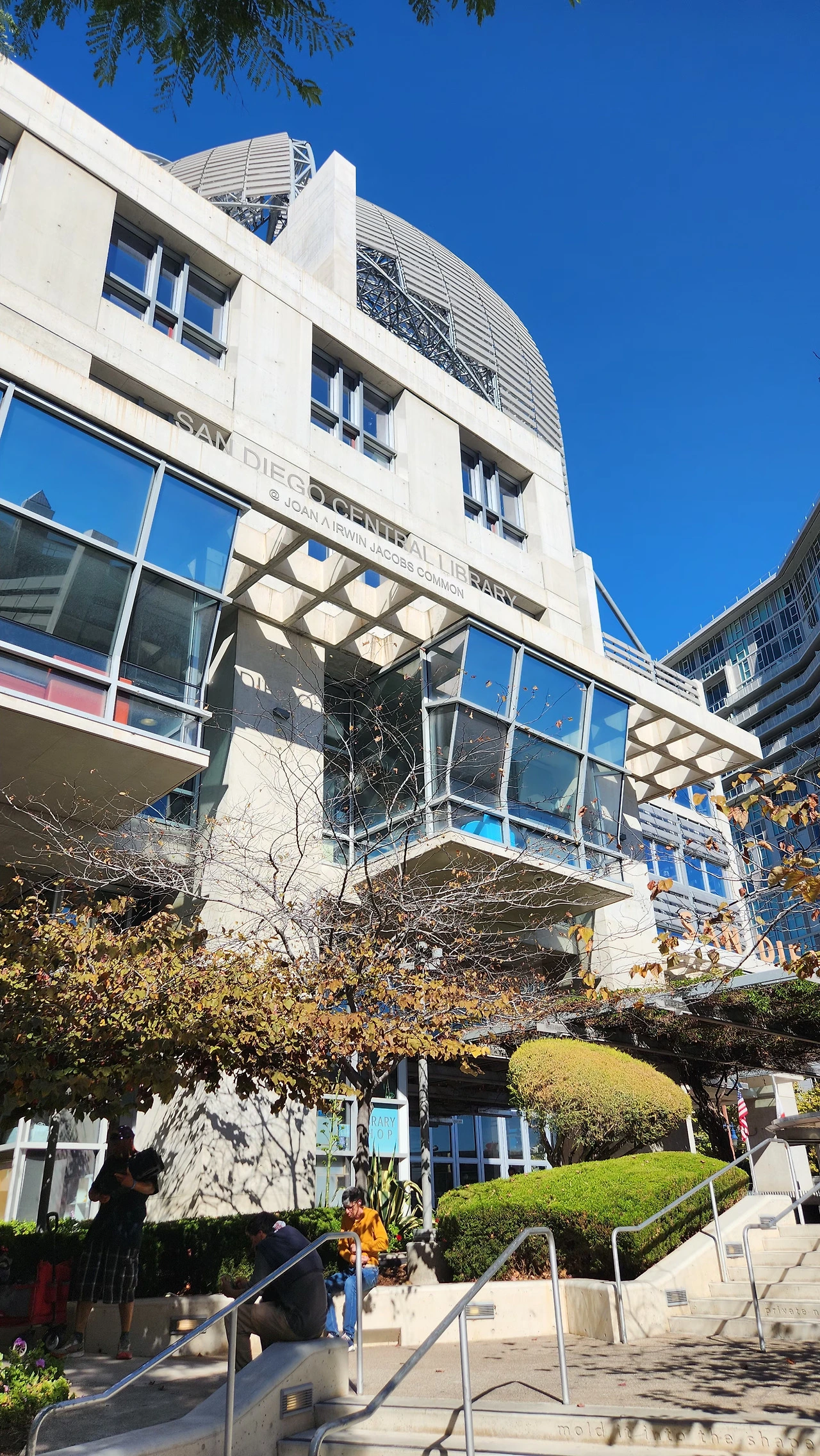 꼭 가고 싶었던 관광지들은 다 둘러보았기도 하고, 원래 관광지보다는 로컬 문화를 즐기는 것을 훨씬 좋아하기에 고민을 하다가 샌디에고 중앙도서관에 왔다. 낯선 도시의 도서관은 그 도시의 온도를 잘 보여주는 공간이라 생각했기 때문이다. 책벌레다운 선택이었다. 그래도 미국은 확실히 미국이더라. 안전한 관광지 한복판에 호텔을 잡았기에 그동안은 몰랐는데, 샌디에고 중앙도서관까지 걸어서 가는 길이 은근히 험했다. 좁은 길로 들어서자마자 어딘지 모를 음침함과 섬뜩함이 느껴져서, 큰길로 돌고 돌아서 왔다.