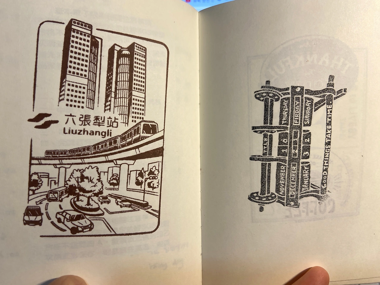 아기자기하고 문구용품의 문화도 잘 발달되어 있는 대만에서는, 언제 어디서 도장을 찍을 수 있는 기회를 만나게 될지 모른다. 가장 가깝게는 지하철역에서, 또 무심결에 들어간 문구가게, 아니면 그냥 식당 같은 곳에서도 가끔은 기념 도장을 찍을 수 있는 것을 발견하게 된다. 가방 안에 조그맣고 얇은 노트를 챙기면 이때 그렇게 든든할 수 없다. 언제 어디서 도장을 만나던지 다 찍어줄 수 있으니 말이다.