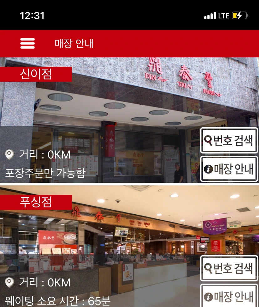 그러기 위해서는 먼저 다운로드해야 할 어플, '딘타이펑'. 안드로이드나 애플 스토어에서 모두 다운을 받을 수 있다. 간단하게 검색창에 '딘타이펑'이라고만 치고 다운을 받으면 된다. 그럼 모든 딘타이펑 분점들에 대한 정보와 메뉴판 등을 확인할 수 있는데, 가장 중요하게 계속 변동되는 웨이팅 번호를 실시간으로 볼 수가 있다.