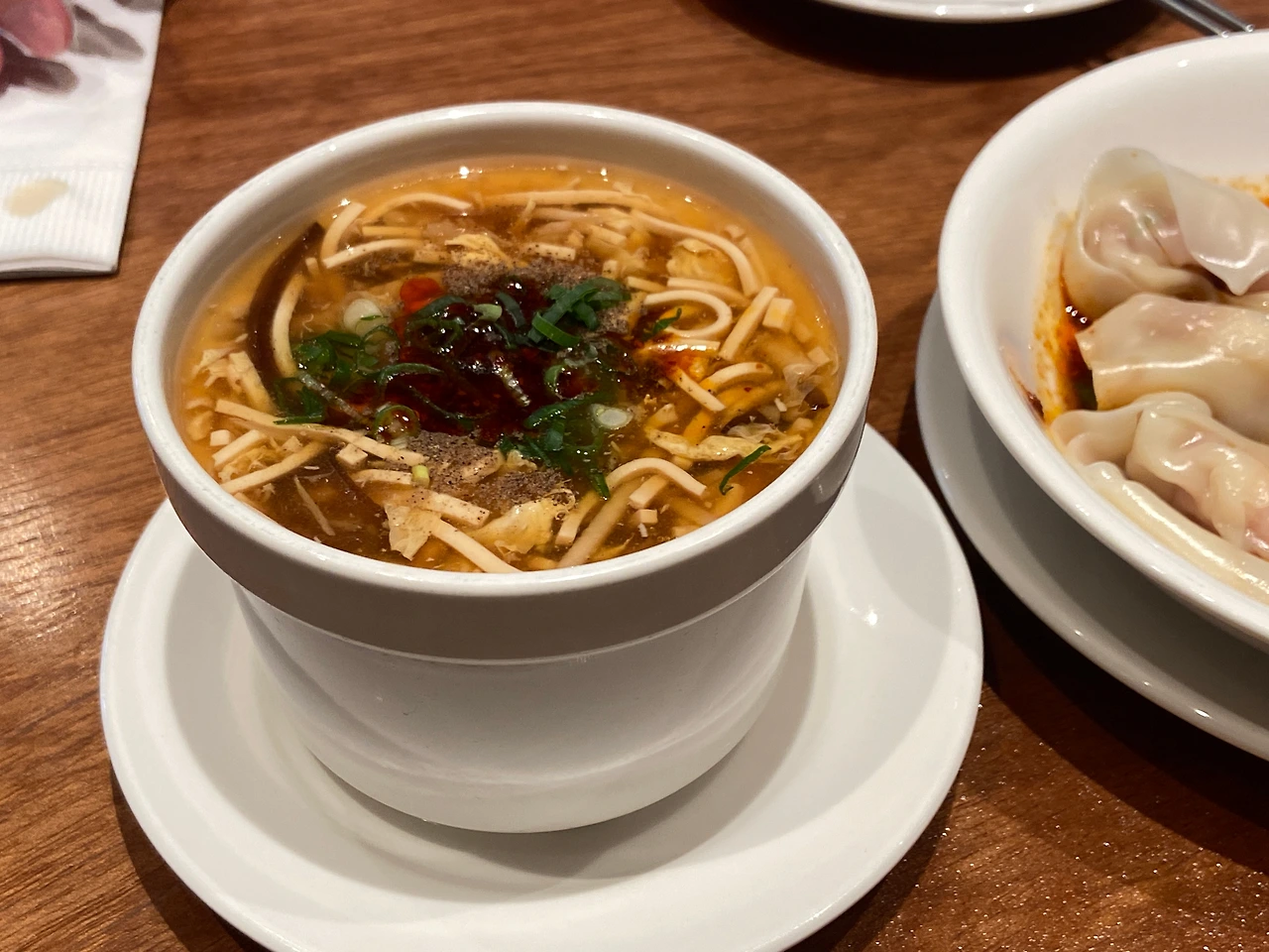 밥상 위에 국물 없으면 밥 못 먹는 사람, 어디 저 말고 또 없으신가요! 한국에 김치찌개가 있다면 대만이나 중국 등 중화권에서 아주 쉽게 찾아볼 수 있는 메뉴, 산라탕(酸辣湯)이 있다. 국내에서는 생각보다 찾아보기가 어려워 어디 중식당에서 우연히라도 만나면 반드시 시켜 먹는 메뉴이다. 인기 메뉴에선 5위로 대만에서는 인정받은 맛이지만 한국인의 입맛에선 조금 호불호가 갈릴 수 있는 맛이다. 이 탕은 말 그대로 시고(酸) 매콤한(辣) 맛이 동시에 느껴지는 독특한 맛이라 한국 음식에서는 비슷한 음식을 찾아보기 어렵다. 똑같지는 않지만 약간 비슷한 계열을 떠올려보자면 태국의 똠양꿍? 그것보다는 조금 완화된 맛으로 안에 두부도 들어가고 전분도 들어가 약간을 걸쭉해 식사용으로도 아주 그만이다. 거기에 오독오독 씹히는 죽순과 목이버섯까지! 정말로 추천하는 메뉴 중에 하나이다.