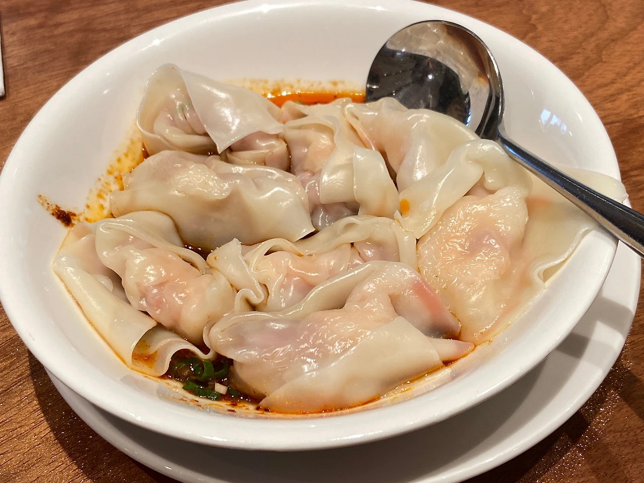 그다음으로는 돼지고기새우 매운 소스 완탕(紅油抄手). 이것도 거의 기본으로 시켜야 하는 메뉴. 인기 순위 2위에 머무리는 거물되시겠다. 얇은 만두 피에 꽉 들어찬 새우소가 탱글 하니 한 입 가득 씹는 즐거움을 느끼게 해 주고, 고추기름으로 낸 양념장이 입맛을 돋운다. 이 양념장은 사실 치트키라 다른 메뉴들에 조금씩 찍어먹거나 뿌려먹어도 아주 그만이다.