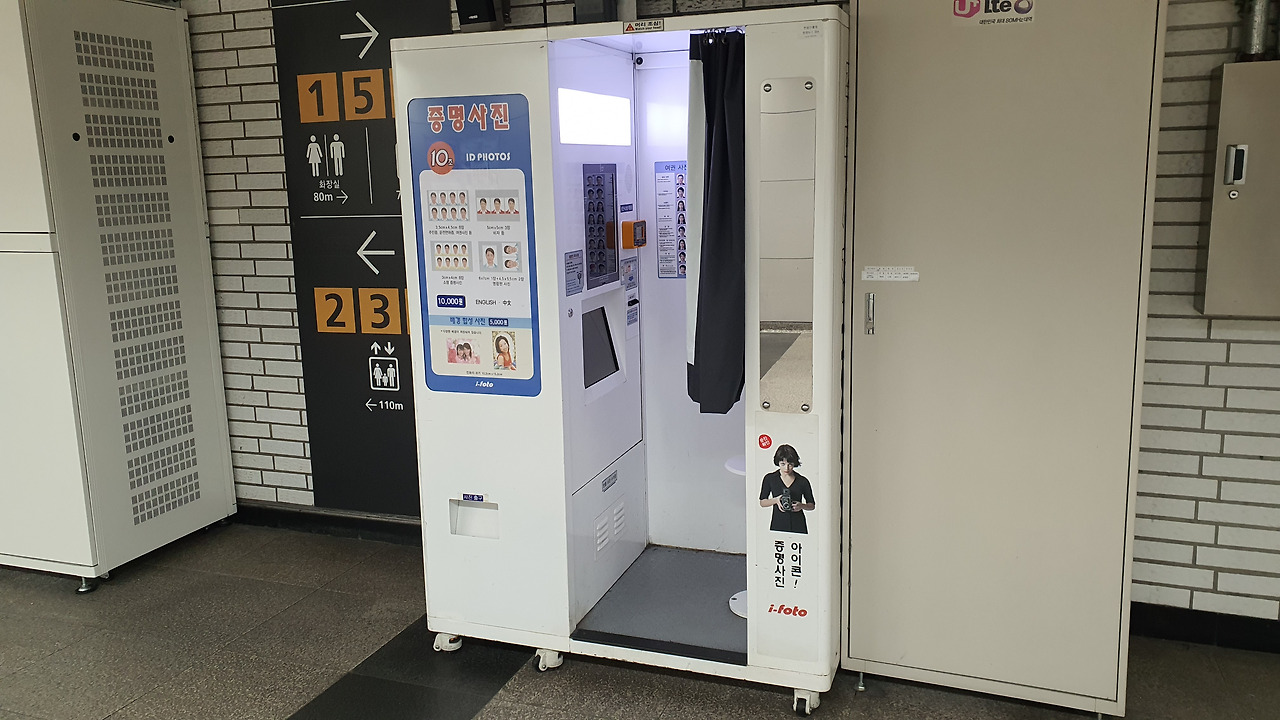 찍고 출력한 사진을 엄마에게 보여주니, 어른들의 눈에는 그래도 조금 불안해 보였나 보다. 증명사진을 이렇게 대충 길에서 후다닥 찍을 수 있다니 그래도 안전한 게 좋지 않겠냐고 하셔서 원래 목표했던 대로 지하철역으로 이동. 오가면서 봤던 증명사진기계에 들어가 사진을 찍었다. 이렇게 약식으로 찍는 건 처음이라 긴장했는데 생각보다 편하고 좋았다. 다만 재촬영의 기회는 딱 1번만 더 주워지니까 매 컷을 신중하게 찍는 것이 중요할 것 같다.