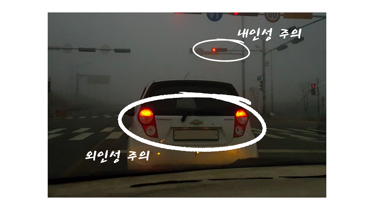 내 의도와 상관없이 주의가 쏠리는 것을 외인성 주의(exogenous attention) 이라고 하고, 의도적인 주의 기제를 내인성 주의(endogenous attention)이라고 한다. 외인성 주의의 예시로는, 운전 중 앞차의 브레이크 등에 나도 모르게 브레이크를 따라 밟게 되는 것을 들 수 있고, 내인성 주의는 속도를 얼마나 줄일지 판단하기 위해 신호등을 찾는 것을 예로 들 수 있다.