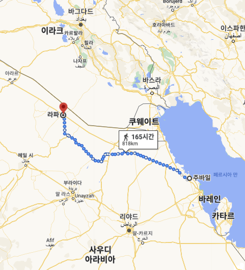 총 150개의 컨테이너 행렬이 주베일 항구를 출발하여 수백 킬로 미터 북쪽에 위치한 ‘라파'로 향했다. 공중에서 보았으면 정말 장관이었을것 같다.지상에서는 장갑차와 완전 무장한 해병대원들이 탑승한 허머 10여대와 하늘에서는 아파치 헬기의 호위를 받으며 장장 12시간만에 ‘라파' 기지에 도착하였다.