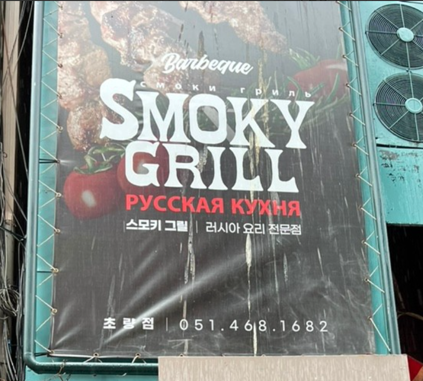 2021년 아내와 부산 여행 마지막 날 귀경을 위해 부산역 인근에서 식사를 위해 음식점을 찾던 중 스모키그릴을 알게 되었다. 러시아 전문 음식점이라는 말에 2018년 여행이 스쳤다. 혹시 그때 그 맛을 또 느낄 수 있지 않을까?라는 기대감이 우리를 스쳤다. 스모키그릴에 들어서는 순간 한국 사람들은 거의 없고, 러시아 분들 (아시아계를 포함한 러시아인)이 식당에 자리 잡고 있었다. 순간 멈칫했는 데, 주인장이 서투른 한국말로 우리를 자리로 안내해 주었다. 블라디보스토크 식당 방문 때 보다 더 낯설었던 순간이었다. 아내와 난 자리를 잡고 종업원이 건네준 메뉴판을 보면서 러시아 여행을 상기하면서 보르쉬와 플로브 그리고 양고기 샤슬릭을 주문하였다.