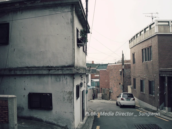 왼쪽 흰 벽에 창문이 정면으로 보이는 이 집을 지나면 오른쪽이 나의 유년 시절을 보냈던 우리 집이 위치해 있다. 우리 가족은 정확히는 내가 5살부터 6학년까지 이곳에 살았다. 오른쪽 붉은 벽돌집들은 그 사이 증개축을 한 듯한데 왼쪽 이 집만은 그대로이다. 하기여 내가 이 동네를 방문한 것도 30여 년의 세월이 흘렀다. 변하지 않은 것이 이상하다는 생각이 들었다.