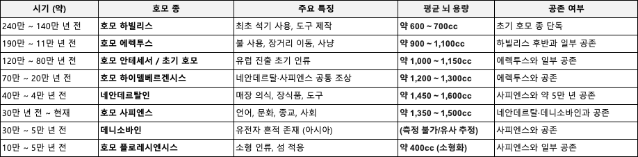 상상하는 능력의 차이는 있지만, 일부 호모 종들도 상상은 했다고 한다. 상상하는 능력을 가진 호모 종들이 공존했던 시기에 왜? 호모 사피엔스만이 인류의 유일 종이 되었을까? 이 의문을 풀기 위한 나의 여정은 호모 종들에 대한 궁금증으로 이어졌다. 240만 년 전후 호모 하빌리스 단독 종에서 지금의 호모 사피엔스 단독 종이 되기까지 우리 인류 역사학과 고고학에서 발견된 호모 종을 살펴보면 공존의 시기가 있었다.