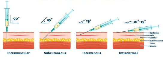 IV : intravenous 정맥 내 주사 SC : Subcutaneous 피하 주사 ID : Intradermal 피내 주사 IM : intramuscular 근육 내 주사