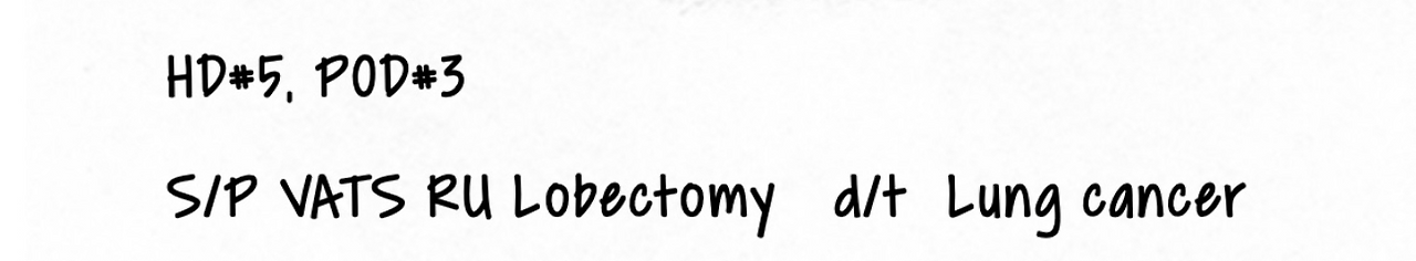 위 환자의 경우, 우측 상부(RU :right upper)의 폐엽 절제술(Lobectomy)을 VATS라는 방법을 통해 시행하였음을 알려주고 있습니다.
