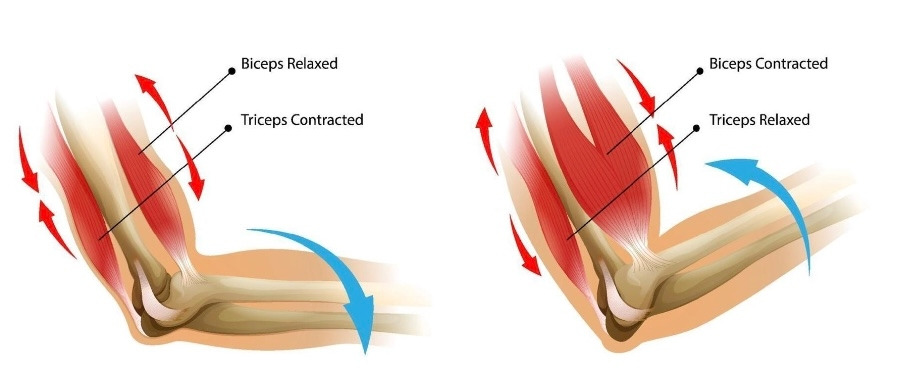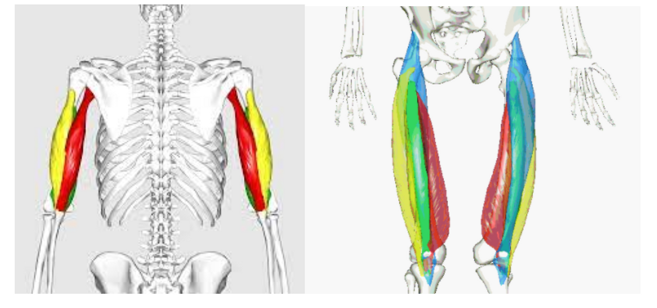 triceps brachii(left), quadricps femoris(right), Creative Commons Attribution-Share Alike 4.0 Intern