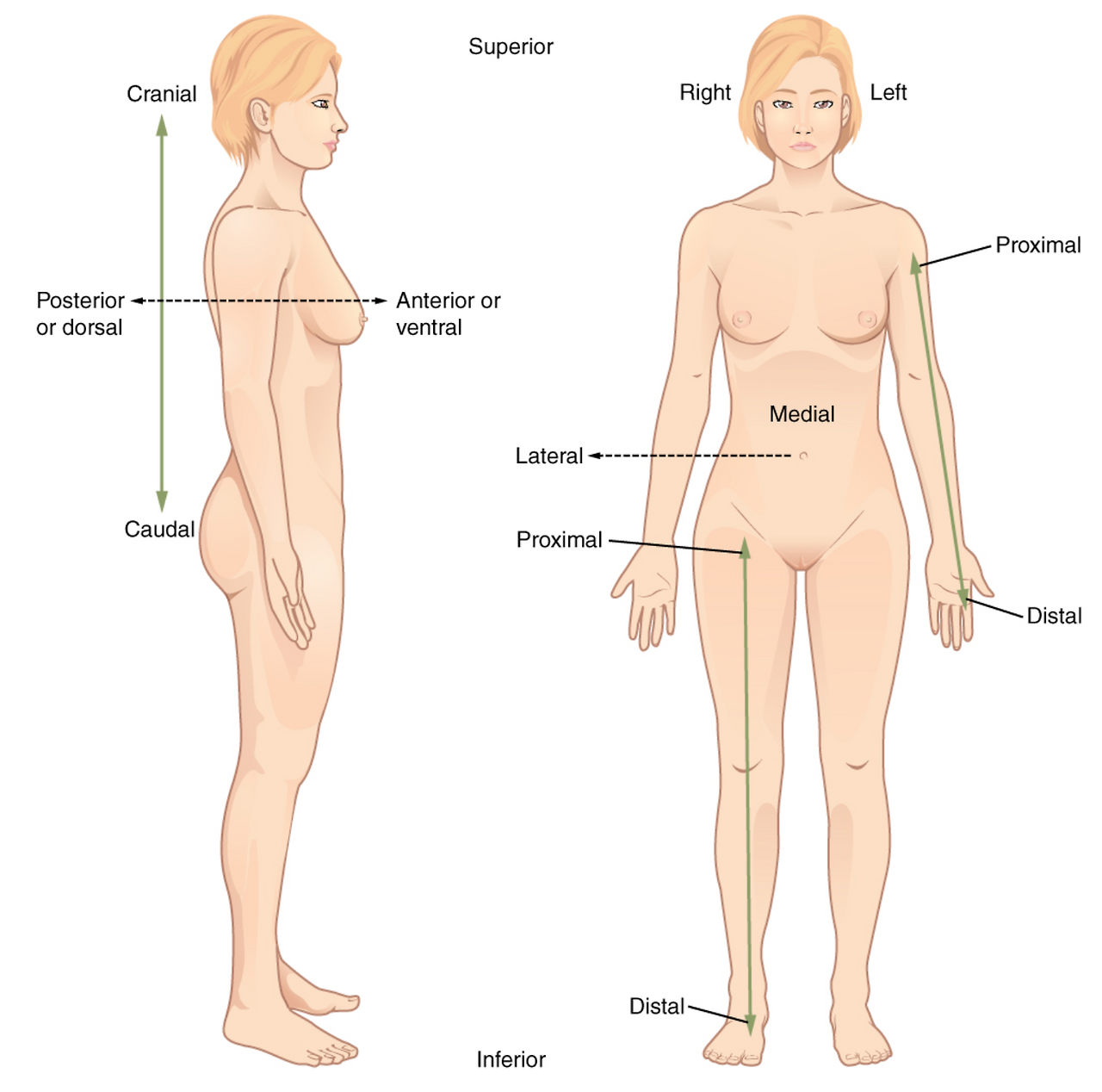먼저 여러분들이 짚고 넘어가야할 약속이 있습니다. 바로 anatomical position(아래 그림)입니다. 일종의 약속이예요. 신체 부위를 이야기하다 보면, 뒷쪽, 왼쪽, 아래쪽 등이 헷갈리기 쉽습니다. 사람의 자세에 따라 앞뒤도 달라지거든요. 차렷 자세를 하면 엄지가 앞쪽이지만, 손바닥을 위로하고 누우면 손바닥이 앞쪽이 되버립니다. 엄지가 앞일까요? 손바닥이 앞일까요? anatomical position에선 손바닥이 앞쪽이예요. 왜냐구요? 그냥 약속이예요. anatomy란 말이 위쪽 upward를 뜻하는 ana~ 와 해체, 해부 dissection을 뜻하는 ~tomy가 합쳐진 말이예요.