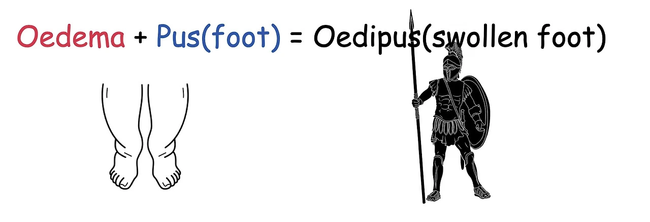 그래서, Oedipus는 oedema와 pus가 합쳐져서 부은 발이 된답니다.