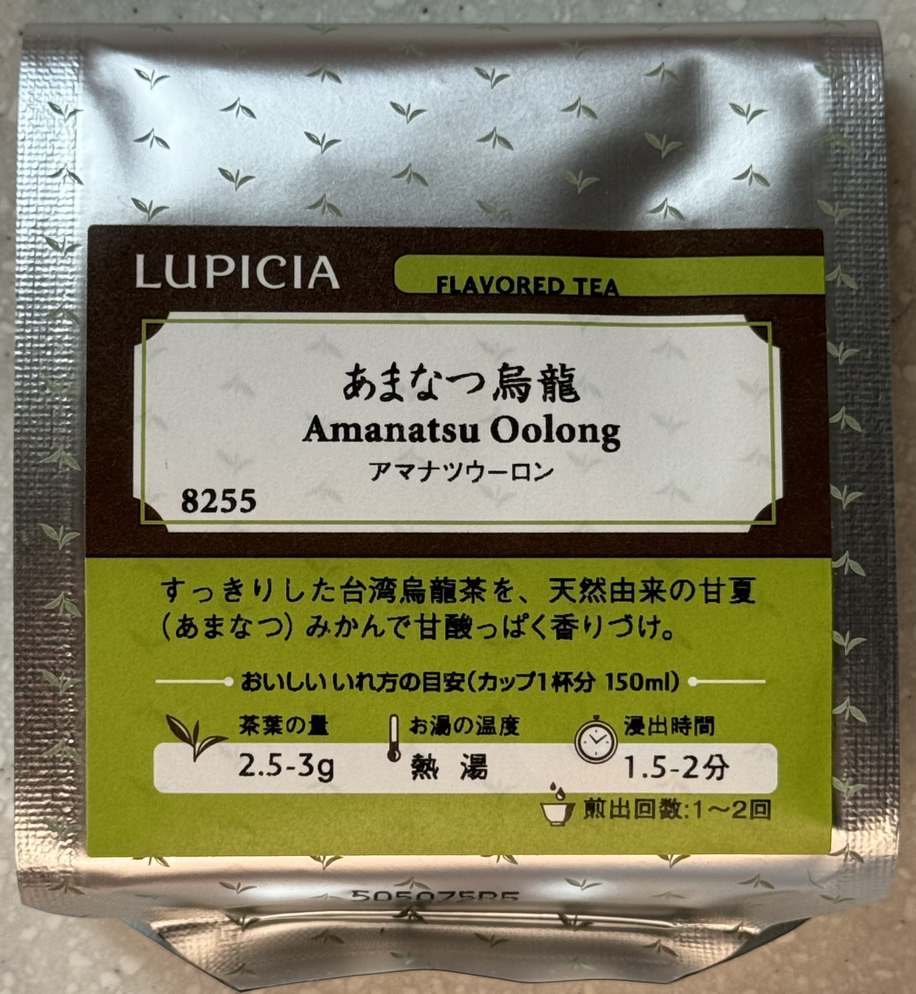 여름아 물렀거라 하면서 계속 마셔보는 루피시아의 가향우롱 시리즈. 아마나츠 우롱은 호불호가 좀 있는 편으로 기억하는데 기회가 있을 때 마셔봐야지 않겠냐며 장바구니에 넣어놨다. 결과적으론 정말 잘한 것 같다. 아마나츠는 일본의 귤 품종 이름으로 甘夏, 그러니까 달콤한 여름 정도 되시겠다. 로맨틱한 이름인데 사정을 알아보면 청귤류를 비롯한 여름귤이 아무래도 신맛이 강하고 과일 자체로는 소비가 잘 안 되니 감귤처럼 좀 달달하게 개량한 여름품종이라고 한다. 알고 보니 꽤 직관적인 이름. 아무튼 그런 아마나츠 귤로 가향을 한 우롱차로 시트러스 우롱이 흔했던가 생각해 보면 꽤 특이하다고 할 만한 차인 것 같다. 계절한정으로 4~8월에만 나오지만 어쩐지 9월 중순인 지금도 주문이 가능. 재고 물량으로 봐도 호불호가 확실히 있다니까. 50g 봉입으로 930엔이고 상미기한은 제조로부터 1년. 강한 시트러스의 짧은 수명이랄까.
