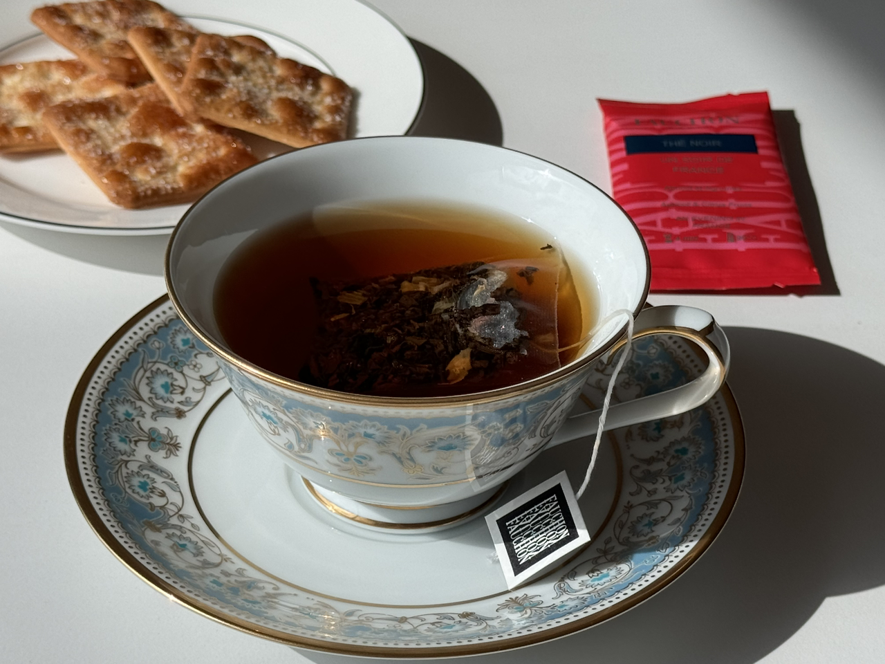 기문과 실론 베이스에 장미, 해바라기 꽃잎과 딱딱해 보이는 오렌지필이 들었다. 살구와 시트러스라고 써있는데 시트러스향은 그리 강하지 않고 달달한 향이 강한 편. 물론 로즈가 스쳐가긴 한다. 핫 스트레이트에선 잘 모르지만 아이스로 가거나 진하게 우리면 로즈가 탁 튀어나왔던 걸로 기억한다.