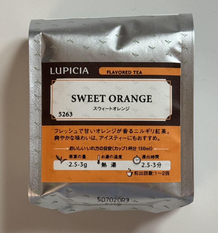 루피시아에서 나오는 과일주스 느낌의 가향차로 핫도 아이스도 권장되는 단짝 친구가 있는데 하나가 허니 레모네이드, 그리고 또 하나가 바로 스위트 오렌지이다. 솔직히 허니 레모네이드를 장바구니에 넣었다고 생각했는데 스위트 오렌지가 들어있었다. 받고 나서 든 생각은 어차피 이렇게 될 거 헷갈리지 말고 그냥 둘 다 시켜서 비교해 볼걸 하는 생각. 아무튼 가을에 문득 좀 덥다고 느껴지거나 문득 좀 쌀쌀하다고 느껴지면 마셔야지 하고 담은 것 같긴 하다. 시음기가 조금 늦었지만 실제로 그렇게 먹었다. 올 가을은 중간중간 더운 날이 어찌나 많던지. 50g 봉입으로 680엔이고 상미기한이 제조 1년이다. 아마도 시트러스 때문이리라.