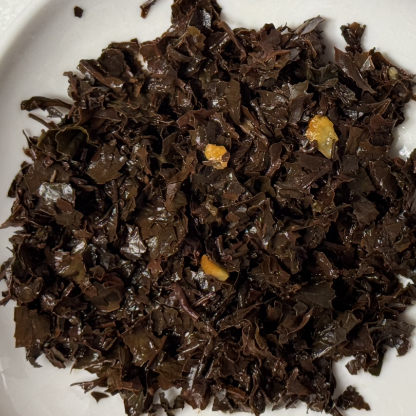 봉투를 열자 약간의 휘발성 가향과 함께 오렌지사탕 같은 향이 진득하다. 가루로 되어있어서 타먹는 오렌지 주스를 기억하는 사람들이 있을지 모르겠는데 딱 그 느낌이다. 약간의 시큼한 산미가 이것이 사탕이나 주스 같은 당위주의 물건이 아니라는 것을 상기시켜 준다. 건엽을 덜어내자 귀여운 색의 오렌지필이 과육느낌으로 섞여있는데 아마도 설탕에 살짝 절여서 겉면에 결정들이 코팅되어 있는 것 같다. 오렌지필이 들어있는 양으로 보아서나 가향느낌이 강했던 것 등으로 보아 꽤나 진한 가향이 들어갔겠거니 싶다. 닐기리 베이스라고 했는데 뭔가 그리운 느낌의 블렌딩이다.