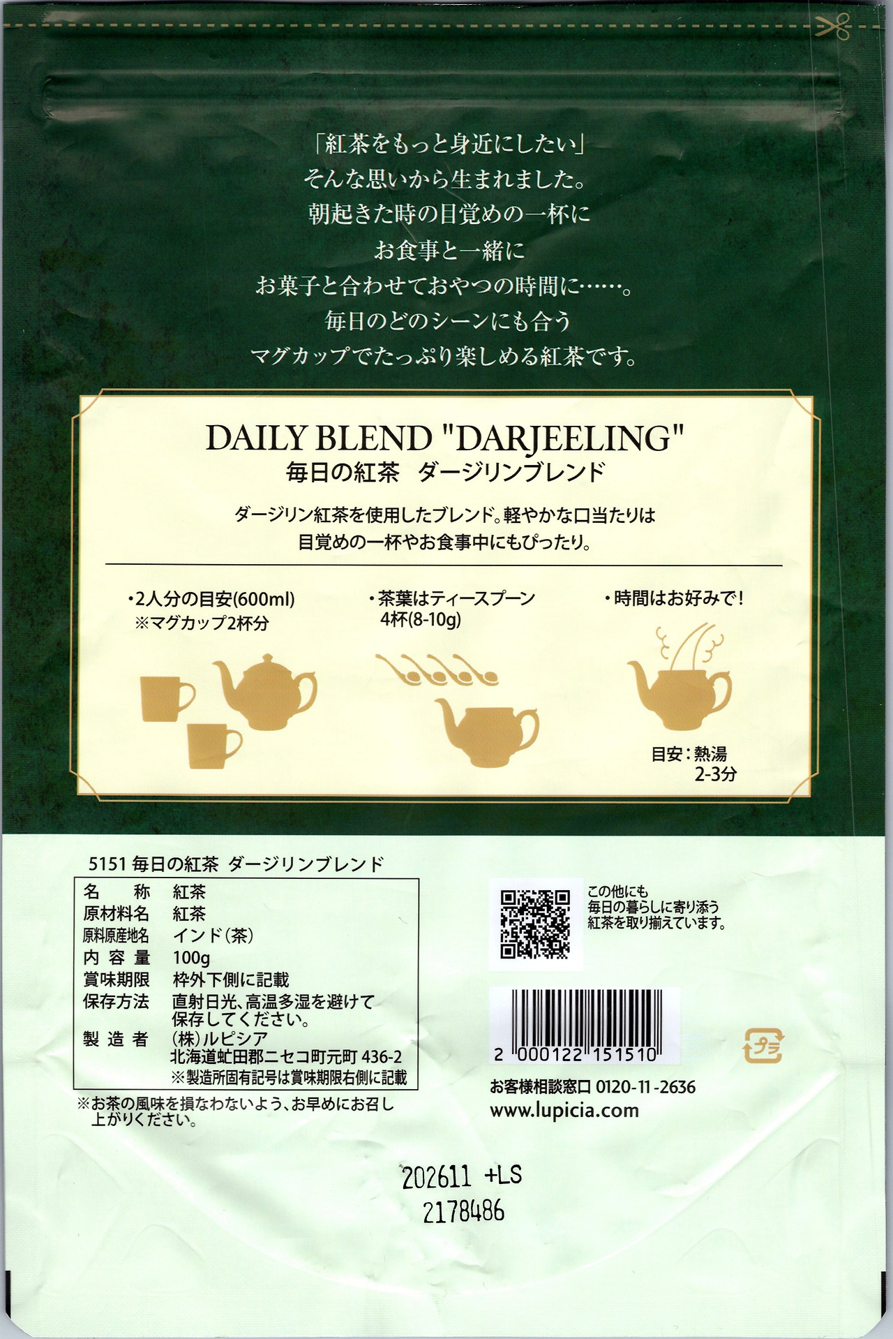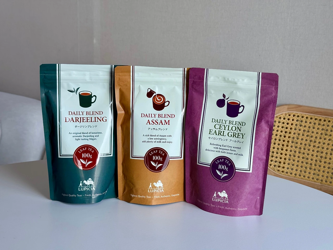 루피시아에서는 작년 연말에 매일의 홍차라는 시리즈로 100g짜리 패키지를 내놓았다. 좀 더 부담 없는 가격대로 접근성을 올려주려는 의도의 제품으로 다즐링, 아쌈, 실론 얼그레이 세 종류의 차를 각각 잎차와 티백으로 발매했다. 우리나라에서는 이런 게 발매되더라도 해당 제품 없이도 매일 홍차 마시던 사람들이나 좀 사가고 신규유입은 기대하기 어려울 거라는 생각인데 일본에서는 과연 어떨지 궁금하다. 뭐 그러한 일본 시장의 사정과는 전혀 상관없이 일단 나는 궁금하니까 마셔보기로 한다. 1월 초에 아내를 아바타 하여 구매하였고 100g 특별팩이 980엔, 같은 가격으로 티백은 20개 패키지이다. 상미기한은 제조 2년.