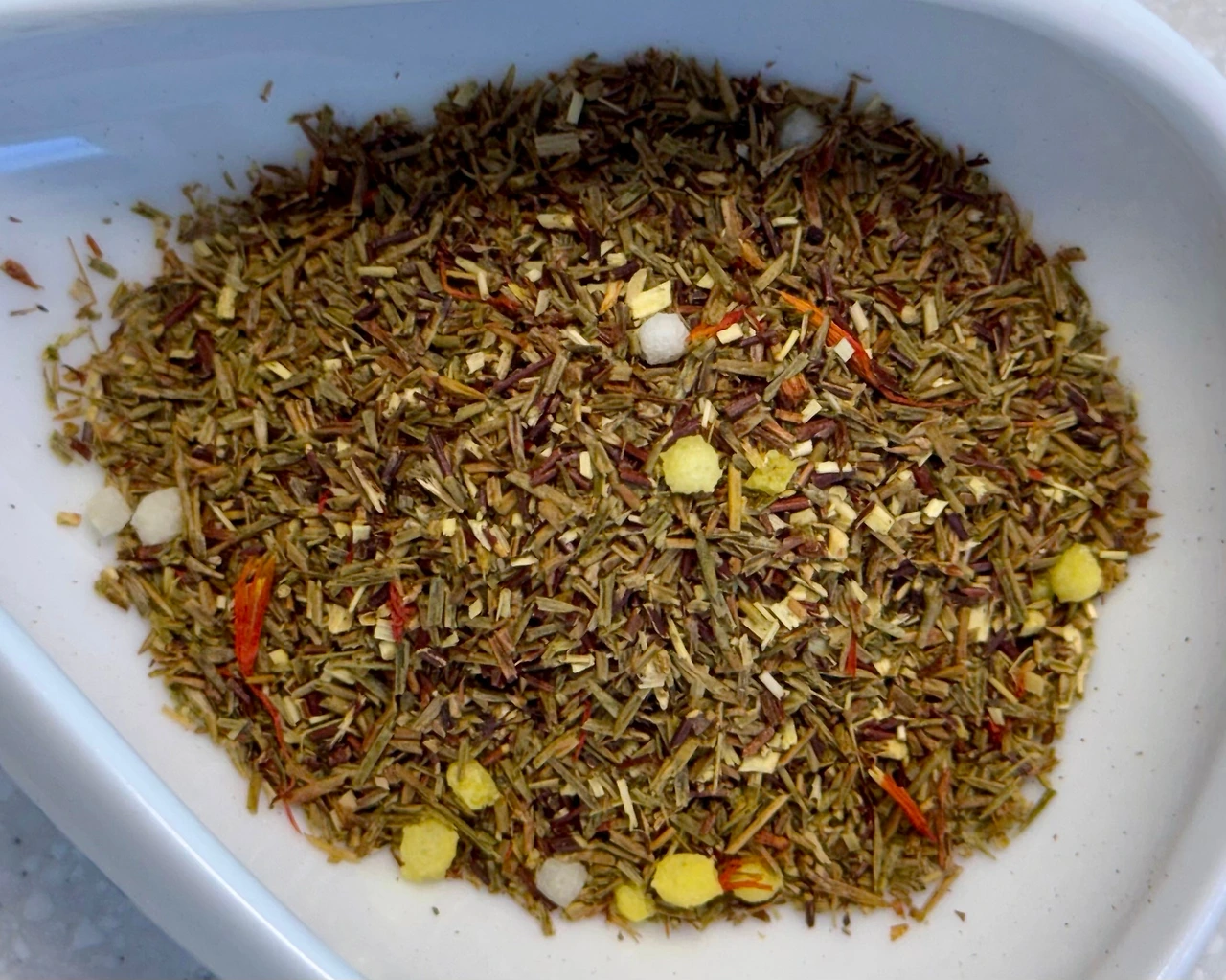 상쾌한 풍미의 그린 루이보스에 네 종류의 감귤 향을 더한 논카페인 티.