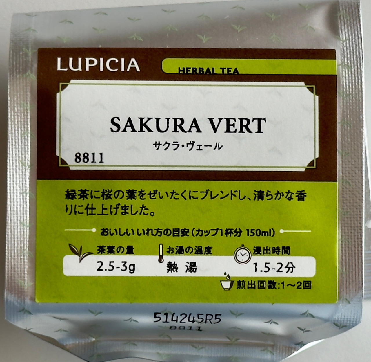 루피시아의 사쿠라 시리즈를 마시고 있다. 오늘은 두 번째인 사쿠라 베르. 홍차, 녹차 버전으로 나오는 많은 차들 중에 보통 홍차가 먼저 발매되면서 블랜딩 이름을 달고 나오면 그 뒤로 -베르를 붙여서 녹차버전이 이어서 나왔던 것 같다. 내가 홍차로 시작을 했기 때문에 순서가 그렇게 느껴지는 것일 수도 있는데 뭐 발매 순서는 관계없을 수도 있겠으나 이름 간의 관계성은 사쿠란보와 사쿠란보 베르, 사쿠라와 사쿠라 베르, 이런 식의 페어링이다. 그러니 사쿠라 다음은 응당 사쿠라 베르가 와야겠지. 사쿠라도 사쿠라 베르도 아주 오래된 루피시아의 시즌 티이고 언젠가 마셔본 것 같긴 하지만 기억도 잘 안 나고 시음기도 없으니 초면인 듯 다시 만나보도록 한다. 이번 시즌의 한정 디자인캔입으로 50g에 1230엔, 일반 봉입으로는 50g에 850엔이다. 충분히 맛보고 싶어 각각 하나씩 구매. 상미기한은 제조 1년이다.