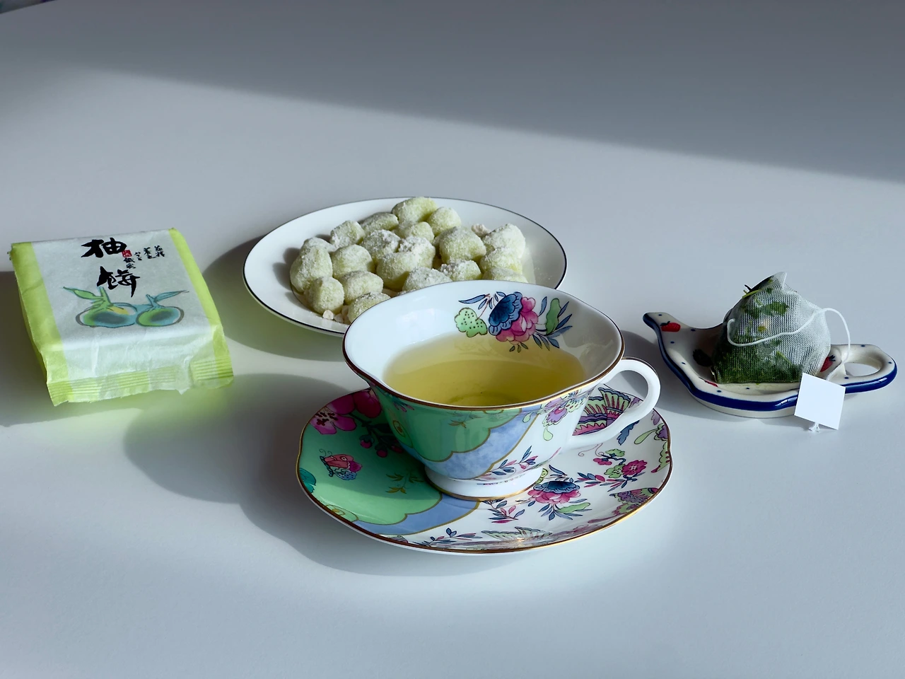 후쿠주엔의 차들 중 종이패키지에 들어있는 애들이 대부분 그렇듯이 종이봉투 안에 은박 지퍼백이 들어있고 그 안에 티백이 10개 들어있다. 봉투를 열어 향을 맡아보면 시트러스 껍질을 오래 말린듯한 씁쓸하고 마른내가 가장 먼저 난다. 약간은 후추 같은 뉘앙스의 향이다. 여태 맡아온 유자향과는 또 결이 살짝 다른 향이라서 신선한 이미지. 티백이라 안이 잘 보이지 않아 하나 뜯어내보니 짙은 녹색의 찻잎들과 간간히 연둣빛 잎들이 섞여있다. 유자껍질이 아주 잘게 잘라져서 들어가 있는데 크기나 양에 비해 향은 꽤 강한 듯. 이제 마셔봅니다.