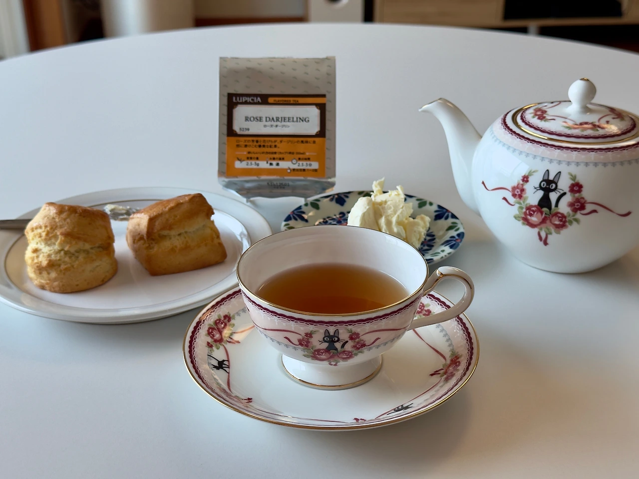 찻잎 6g을 100℃의 물 300ml로 2.5분 우려낸다. 다즐링에도 자비 없는 끓는 물이다. 건엽을 보아하니 삶아내도 크게 지장이 없을 것 같은 찻잎이다. 차를 따라내니 은은한 장미향이 퍼져나간다. 잔에 코를 대고 맡아보면 구수한 향이 더 확실해진다. 한 모금 마셔보면 확실히 다마스크 로즈와는 다른 차품인게 다마스크 로즈의 그 직설적인 단맛이 아닌 순한 다즐링의 느낌으로 약간은 푸릇한 다즐링의 맛이 적절히 구수하게 퍼져나간다. 약간은 누룽지 같은 맛. 그렇다고 홍배를 진득하게 한 구운 맛 까진 아니다. 다마스크 로즈에 비해 연하고 부드럽기 때문에 보통은 찐해찐해 홍차여서 크림티를 무조건 먹어야겠다는 생각이 드는 다른 로즈티들과는 또 다른 결이다. 아쌈이나 닐기리 같은 전형적인 인도 홍차에 비해 다즐링이 갖는 부드러움 때문 일 텐데 그 느낌이 로즈에도 그대로 적용되어 다즐링의 차향을 살짝 덮을 정도로만 그 향이 블랜딩 되어있어서 차도 가향도 연하다는 느낌이다. 홍차스러움과 약간의 풋풋함을 동시에 지녔고 강한 인상은 아니지만 착실히 볼륨감을 보여주는 다즐링의 차품에 달짝지근한 맛을 딱 한 방울 떨어뜨린 것처럼 온전히 녹아들어 간 장미향이 벨런스가 좋다. 다마스크 로즈를 생각하면 화려함과 단아함의 대비정도 될 것 같다. 아무래도 이건 라이벌 구도 느낌인데 무슨 김완선 강수지도 아니고.