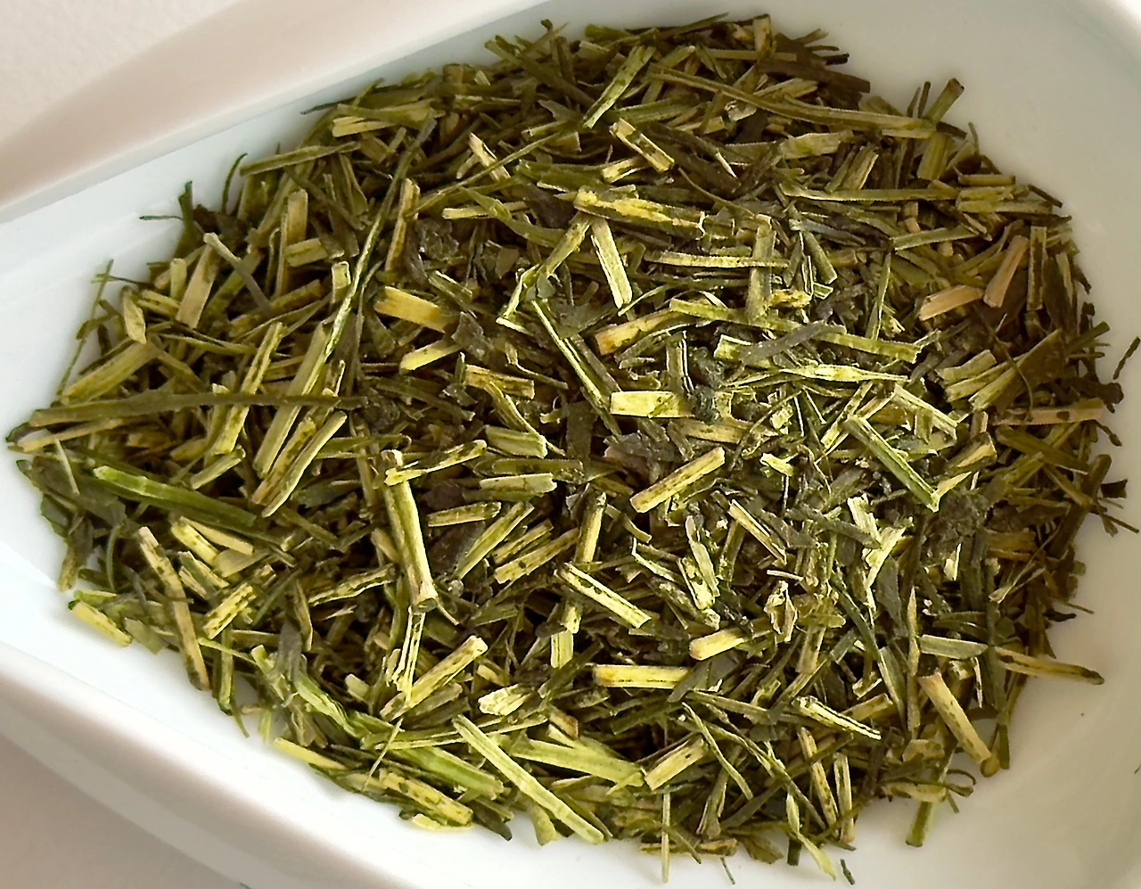 봉투를 열어보니 상쾌한 말차향이 난다. 뜬금없이 진짜 말차의 향이 폴폴 나거나 할리는 없고 줄기차이다 보니 가공 과정에서 이래저래 발생한 부스러진 가루들이 고스란히 분말처럼 작용하면서 말차향 비슷하게 향이 올라오는 듯. 코에서 촉각 비슷하게 인지하는 느낌이 후각신호로 착각을 일으키는 것 같다. 상쾌하고 달달한 것이 확실히 아주아주 가벼운 녹차의 느낌이 든다. 묵직한 센차들과는 반대쪽에 있는 페트병 녹차같이 깔끔하고 상쾌한 느낌의 향이다. 건엽을 보면 줄기를 짧게 톡톡톡 잘라놓은 모양으로 알고 있던, 생각했던 쿠키차의 모습 그대로.