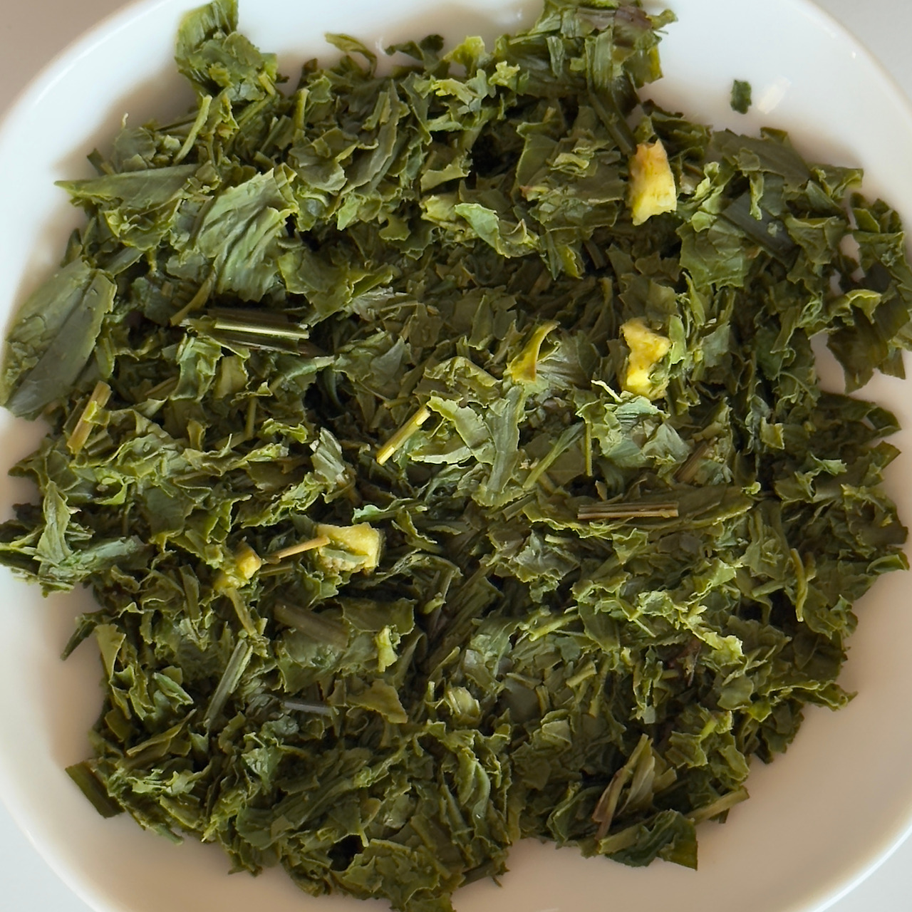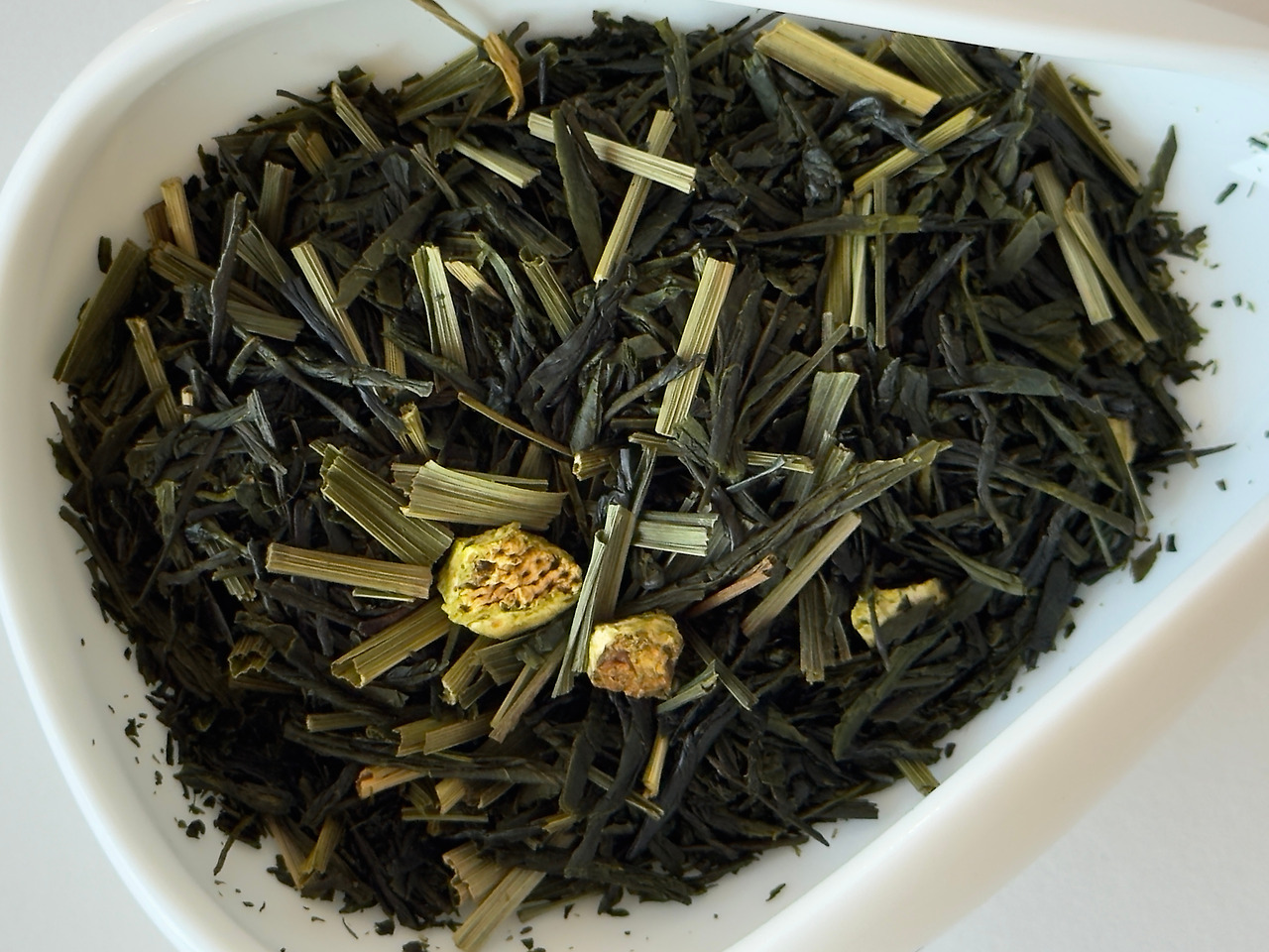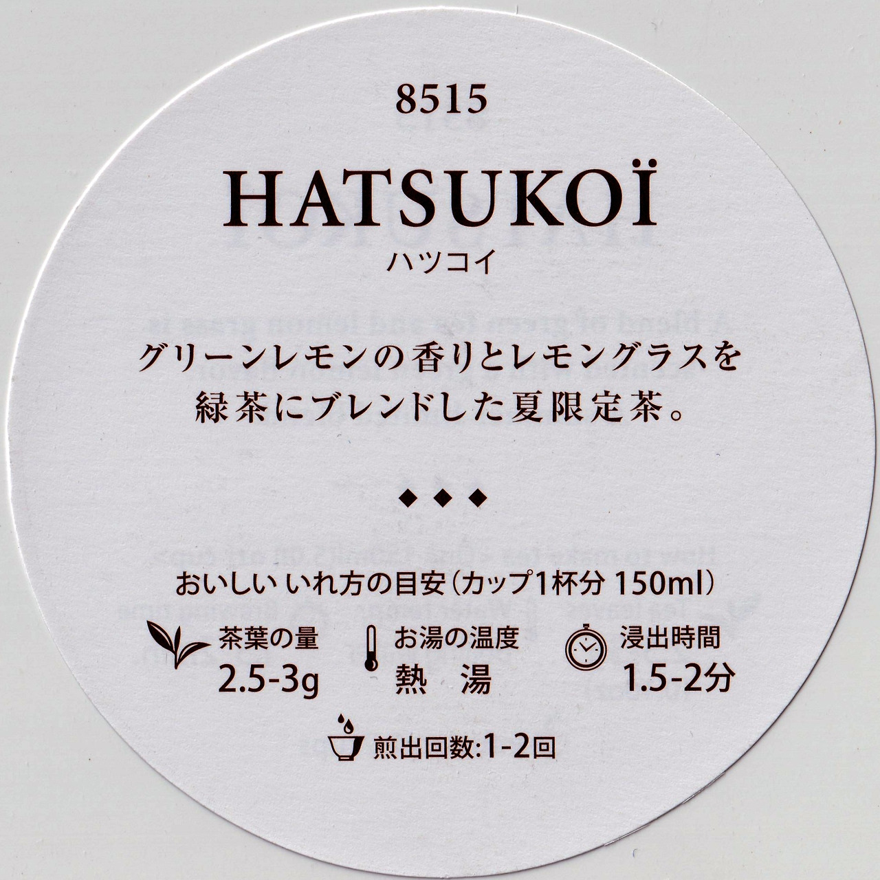 봉투를 열어보면 어김없이 강한 레몬향이 느껴진다. 그래도 나츠코이의 레몬향보단 살짝 약한듯하면서 조금은 더 달달한 과일 주스 느낌의 향이다. 건엽을 덜어내 보면 여전히 풍성한 레몬그라스와 레몬필 토핑이 보인다. 녹차가 평소보다 잎 두께가 두툼해 보이고 윤기가 도는 게 꽤나 맛있어 보인다. 짤막하게 스포일러를 하나 미리 풀자면 올해 하츠코이는 녹차가 너무 맛있다.