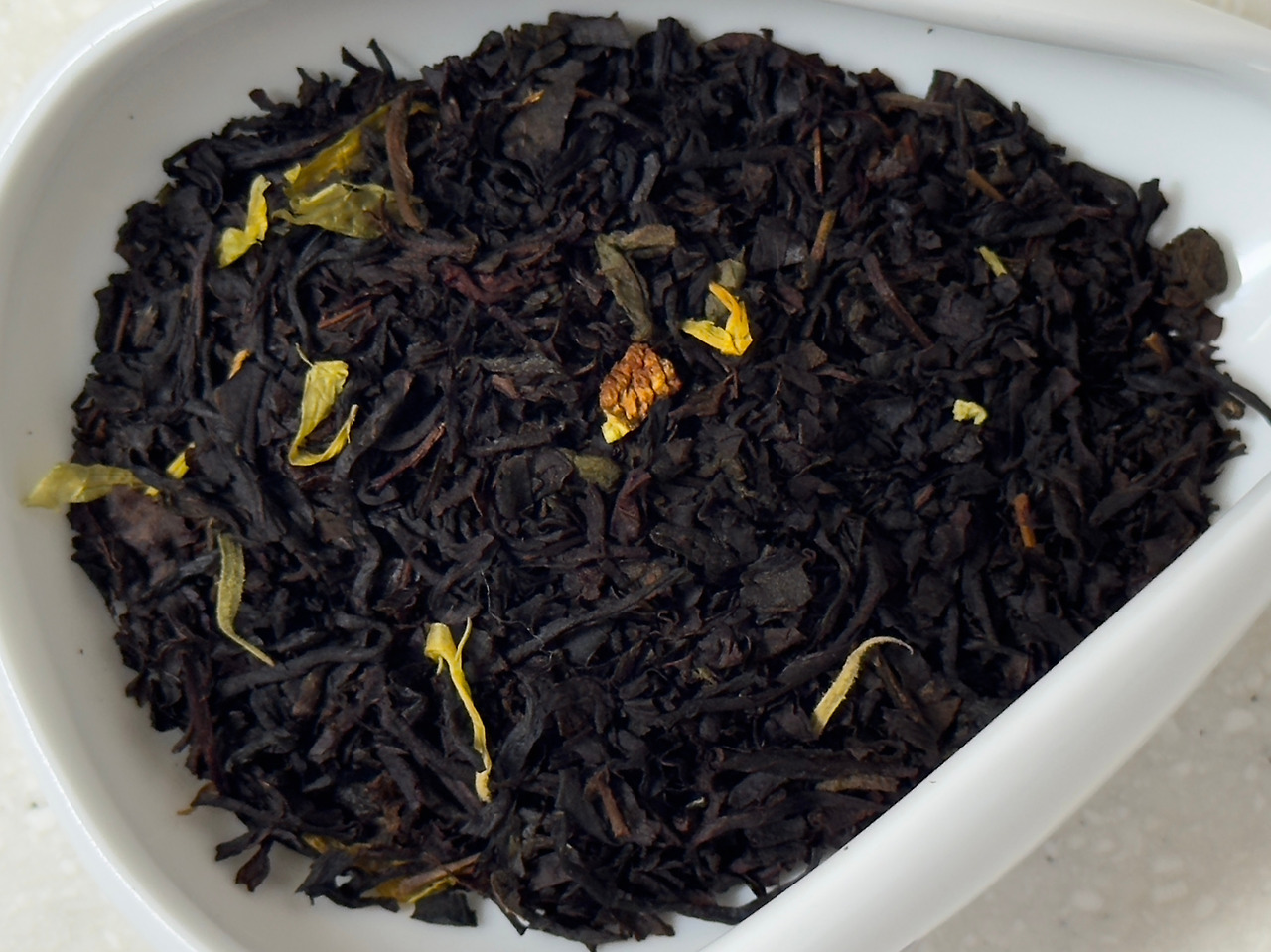 봉투를 열어보니 의외로 흑설탕에 절여진 레몬청의 향이 난다. 살짝 캬라멜색의 진한 흑설탕의 이미지가 떠오르는 꿀향에 바싹 마른 레몬향이 짙게 느껴지는데 하츠코이 나츠코이류의 생레몬 내지는 레모나 같은 그런 느낌은 아니고 마르고 절여진 그런 종류의 뉘앙스가 강하다. 야생꿀의 종류인 것 같은데 TWG의 Winter palace보다는 프로폴리스 느낌이 살짝 덜하고 달달함이 조금 더 있는 편. 그래도 어쨌든 야생꿀이라서 꿀의 향이 달달함을 일단은 이기는 편. 건엽을 덜어내어 보니 기분 탓일까 약간 나뭇잎 같은 느낌의 메리골드와 두툼한 레몬필이 들어있다. 홍차는 디카페인마냥 검은데 인도와 스리랑카 홍차가 블랜딩 되었다고. 설마 하니 꿀을 먹여서 색이 검게 된 건 아닐 텐데 가향이 꽤나 짙은 지 잠시 스쳐가는 다하에도 향이 묻는다. 그럼에도 휘발성은 전혀 없는 게 꿀향은 에센스류로 입히는 게 아닌 건지 어쩐 건지 모르겠다.