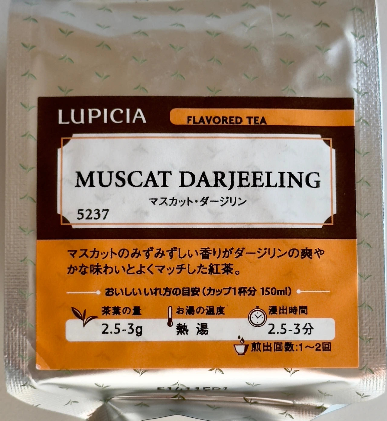 장미시즌도 아니고 애매한 시즌에 로즈 다즐링과 함께 뜬금없이 나오는 가향 다즐링이 있는데 바로 머스캣 다즐링이다. 아직 봄도 아닌데 사쿠라 시리즈는 어차피 작년 사쿠라로 만드니까 빨리 파나 보다 겨우 납득할 때쯤 엥 장미는 아직 피려면 못해도 서너 달은 남은 거 같은데 싶을 때 갑자기 나오는 로즈 다즐링처럼 머스캣 다즐링도 지금 갑자기 머스캣? 다즐링? 하는 느낌으로 발매가 되는 무려 시즌한정이다. 보통 계절 한정이면 계절감을 느낄 수 있어야 하는 거 아니냐고. 의문의 계절한정 시리즈 머스캣 다즐링인데 어쨌든 아이스티 추천이기 때문에 아이스가 어울리는 계절까지 잠시 묵혀두었다가 이제야 시음기를 작성하게 되었다. 50g 봉입이 세금포함 900엔이지만 후쿠오카 박대점에서 면세가 833엔에 구입. 상미기간은 제조 2년으로 두봉을 구입했다.