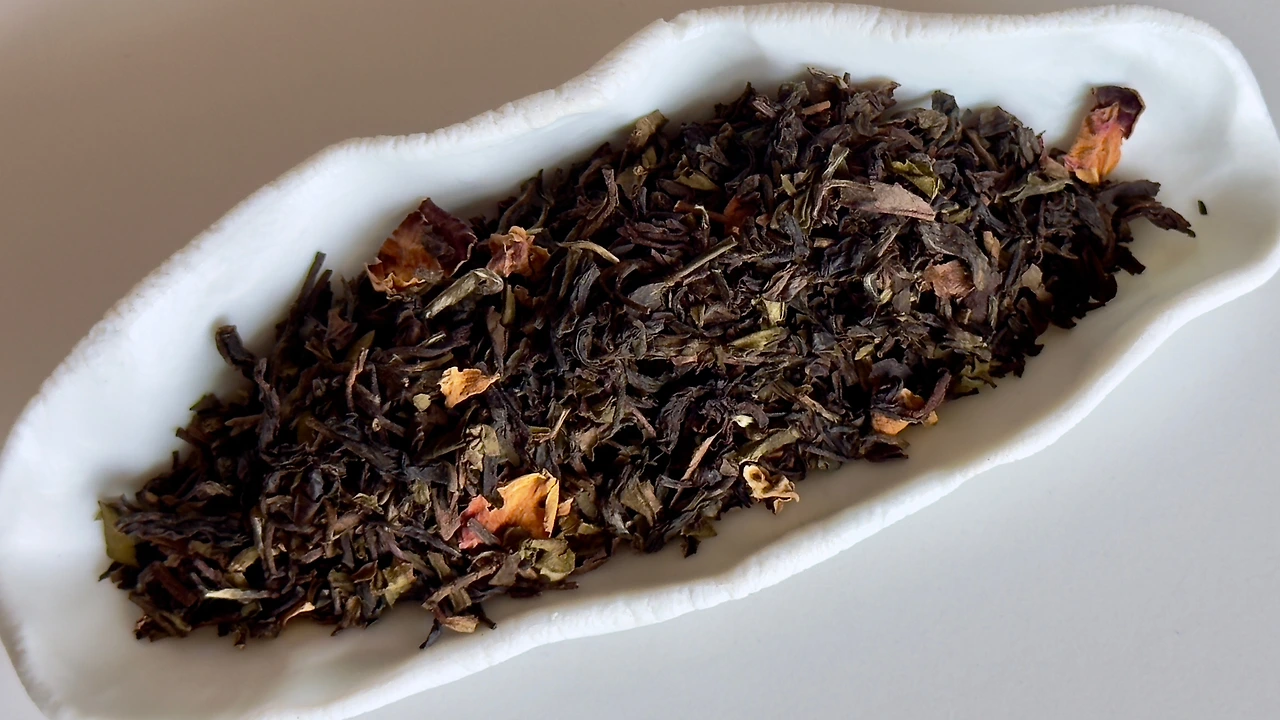 봉투를 열어 향을 맡아보면 의외로 은은하게 요구르트 같은 향이 난다. 호로요이같은 물에 희석된 듯 은은한 복숭아향이 있고 복숭아 사탕 같은 녹진한 달달함도 겪어본 거 같은데 이렇게 묘하게 크리미 한 거 같다는 느낌이 드는 복숭아향은 또 루피시아에선 처음인 것 같다. 그렇다고 또 완전 새롭냐 하면 그런 것도 아니고 흔히 루피시아 봉투를 딱 열면 훅 하고 올라오는 휘발성의 향이 이번엔 반대방향으로 봉투 안으로 파고든다는 느낌인데 그 방향성 하나로 이렇게 다른 인상을 주는 것 같다. 건엽을 덜어내면 다즐링 잎과 함께 백도 껍질 같은 꽃잎이 들어있는데 순간 복사꽃이라고 생각했다가 자세히 보니 장미꽃잎이구나 하고 알아보았다. 뻔하게 속았지만 이런 게 루피시아 토핑의 매력이라고 생각한다. 가만 생각해 보니 꽤나 가향에 의존하는 블랜딩인데 건엽의 향이 일반적인 모모 가향과는 같은 향료 다른 느낌으로 다르지 않았나 싶다.