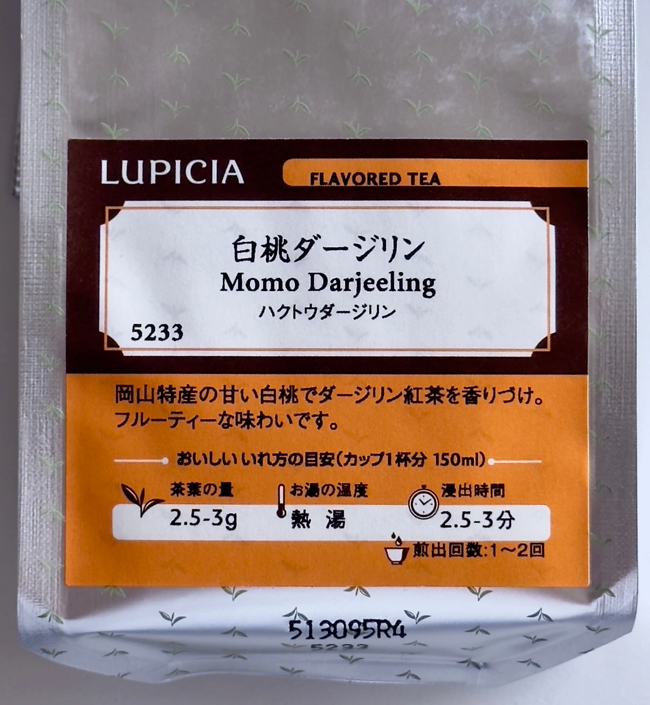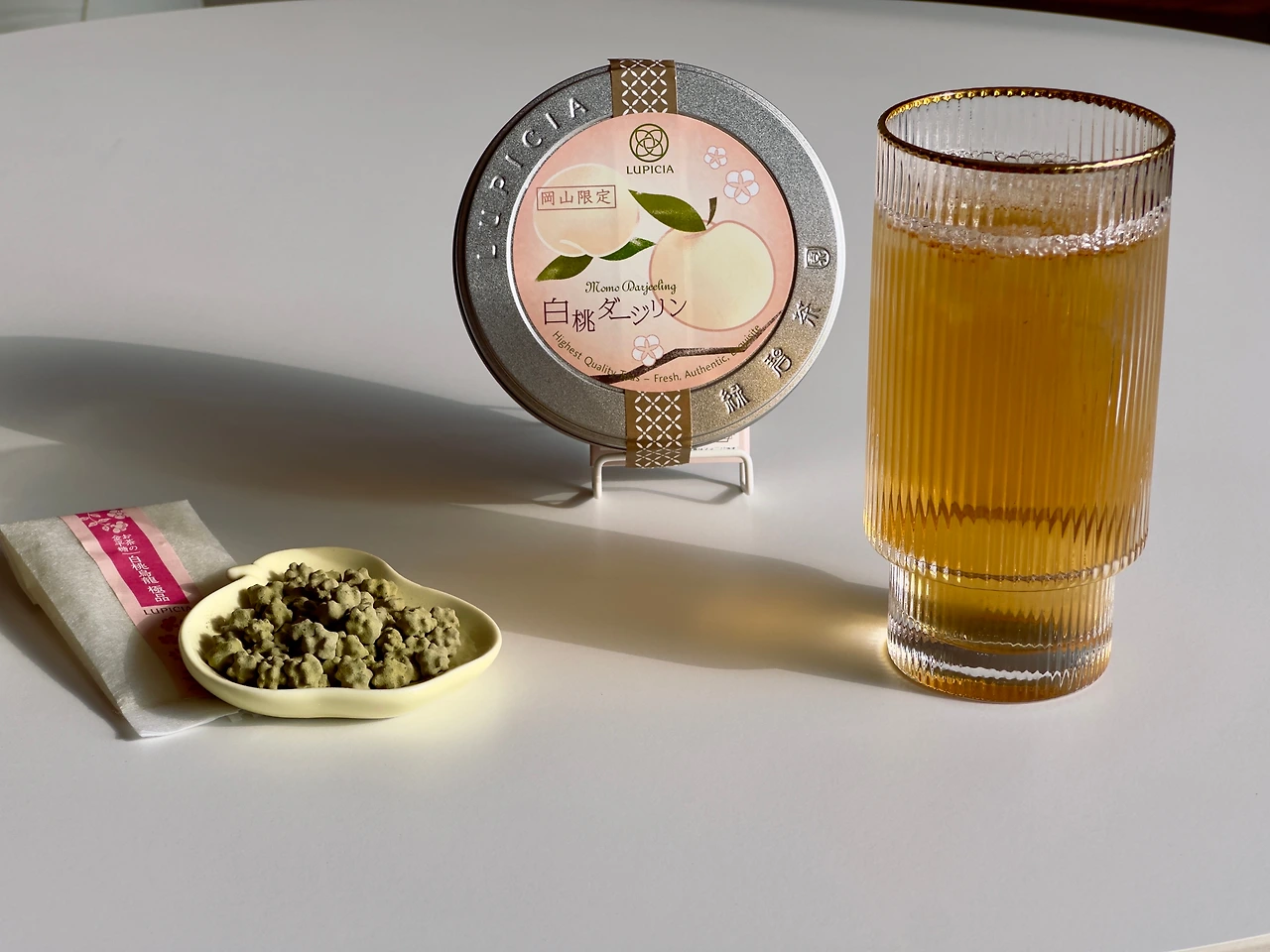 오카야마 특산의 달콤한 백도로 다즐링 홍차에 향을 더함. 과일처럼 상큼한 맛입니다.
