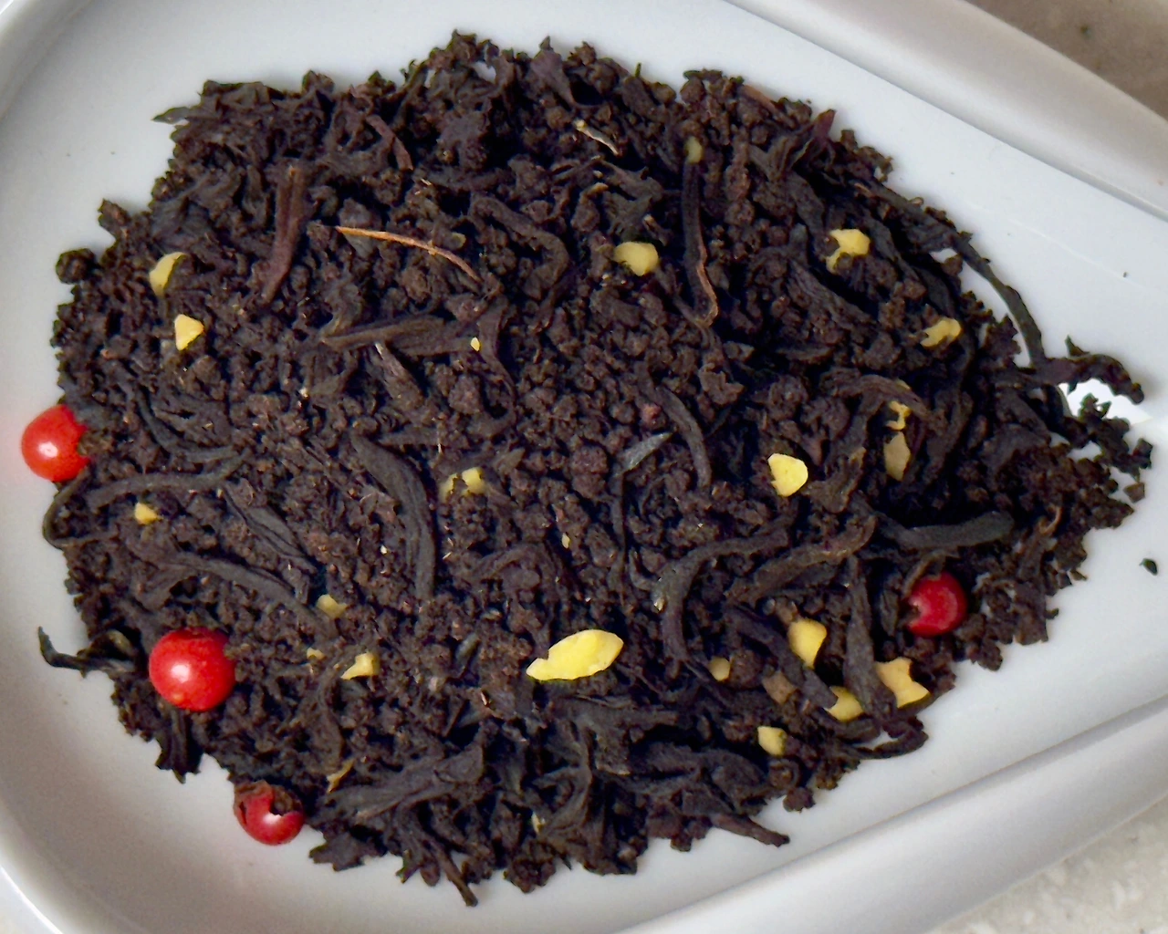 봉투를 열자마자 달달한 향이 짙게 터져 나온다. 올해 마롱가향을 정말 짙고 달게 해서 봉투를 열자마자 좀 놀랐을 정도. 다시 잘 맡아보면 아몬드 구워놓은 듯한 향도 나긴 하는데 기존에는 적당히 마롱향이 나는 과자류 같은 느낌이었다면 올해는 확신의 마롱가향으로 스트레이트로 마실 수 있을까? 싶을 정도의 짙은 향이다. 건엽을 덜어내어 보면 아몬드 조각과 핑크페퍼 토핑이 예쁘게 자리 잡아 있다. 인도와 케냐홍차 조합으로 아마도 씨티씨로 말려있는 게 케냐라고 생각된다.
