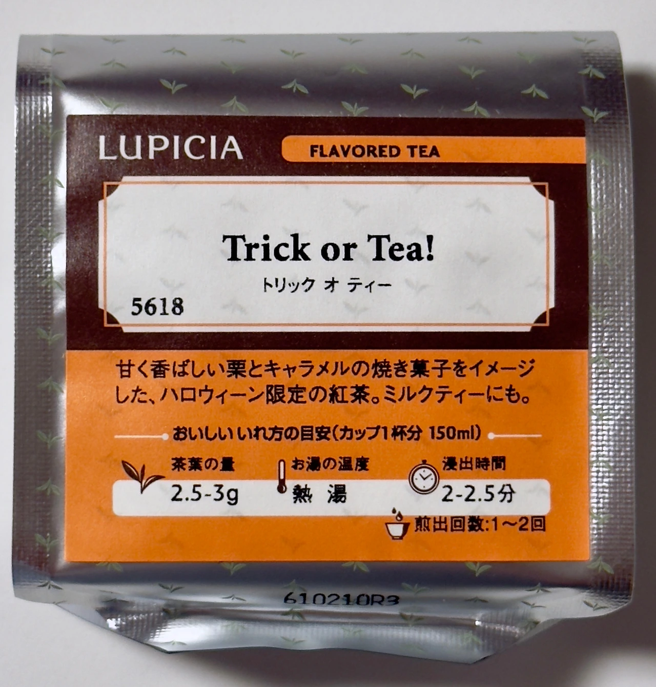 할로윈을 생각하면 이제 파티하고 노는 생각보다 슬픈 마음이 먼저 들어서 막 그렇게 즐기고 싶다는 느낌은 확실히 덜한 것 같다. 개인적으로 할로윈이라고 하면 이제 본격적으로 날이 쌀쌀해지고 그래서 반팔티로 밖에 다니기는 좀 그렇고 뭔가 걸쳐야 하는 시기, 그리고 썸머타임이 끝나서 한 시간 더 긴 밤을 보내는 날이 그즈음인 그런 시기로 가장 먼저 머릿속에 떠오른다. 확실한 건 본격적으로 단풍이 무르익고 낙엽이 우수수 떨어지는 차가움의 시기가 시작된단 이미지인데 그래서인지 버터리한 과자 베이커리의 달달한 향이 따뜻함으로 느껴지기 시작하는 시기이기도 하다. 트릭오어티 같은 마롱티 계열의 차들이 땡기기 시작한단 뜻인데 할로윈이라는 날짜와 트릭오어티의 마롱티 조합은 정말 찰떡이란 생각이다. 매년 마시게 되는 트릭오어티, 50g 봉입으로 950엔이고 상미기한은 제조 2년. 2년 사이에 50엔이 오르다니 꽤나 가파른 물가상승이다.