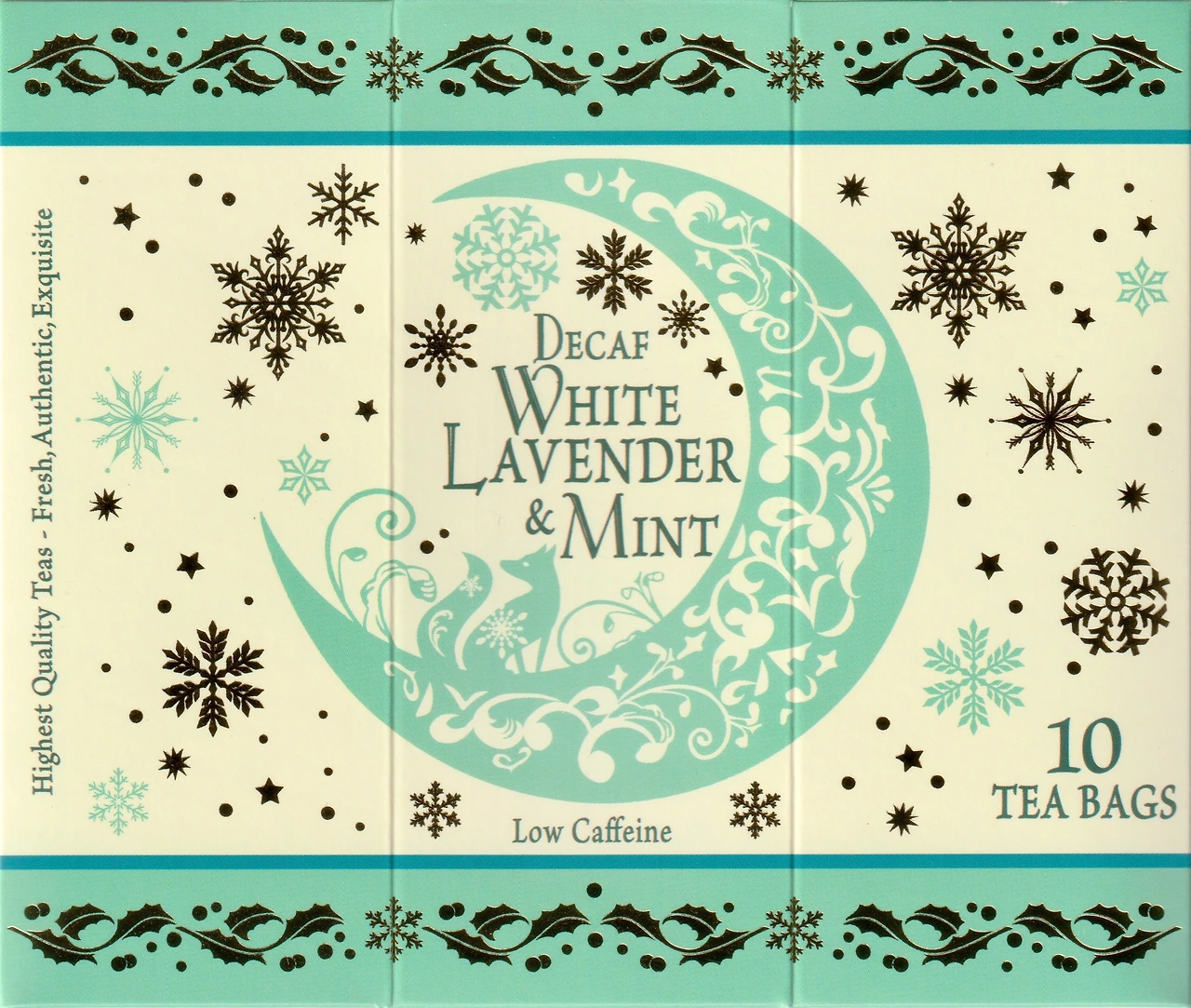 박스엔 디카페인의 특징을 조금 더 강조한 것 같고 크리스마스에 공개하는 이유도 동지에 가까운 긴긴밤의 크리스마스를 보내기에 디카페인이 좋지 않냐는 메시지를 포함하기 위해서 그런 것도 같다. 딱히 계절을 가려야 하는 블렌딩은 아닌 듯. 그나저나 화이트 라벤더라니 일반 라벤더와는 어떤 차이인지가 좀 궁금하긴 하다. 라벤더와 민트를 블렌딩한 홍차는 그렇게 낯선 조합은 아닌 듯하여 무난하게 좋지 않을까 싶다. 진짜 밤에 마시기 좋은 차로 타겟팅한 느낌이 물씬 나네.