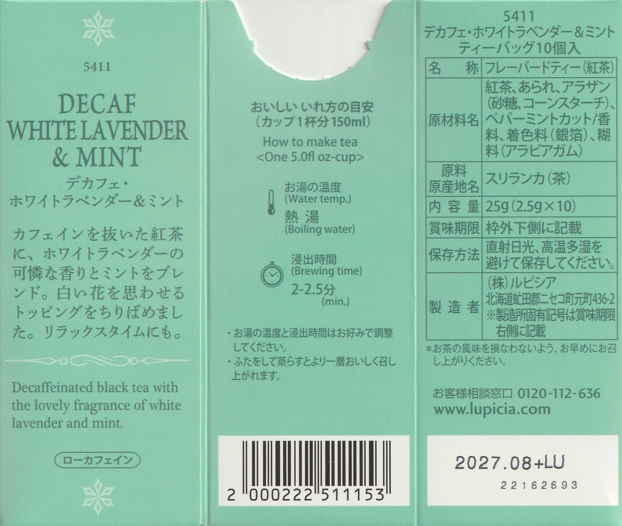 루피시아 5411. 디카페인 화이트 라벤더 & 민트