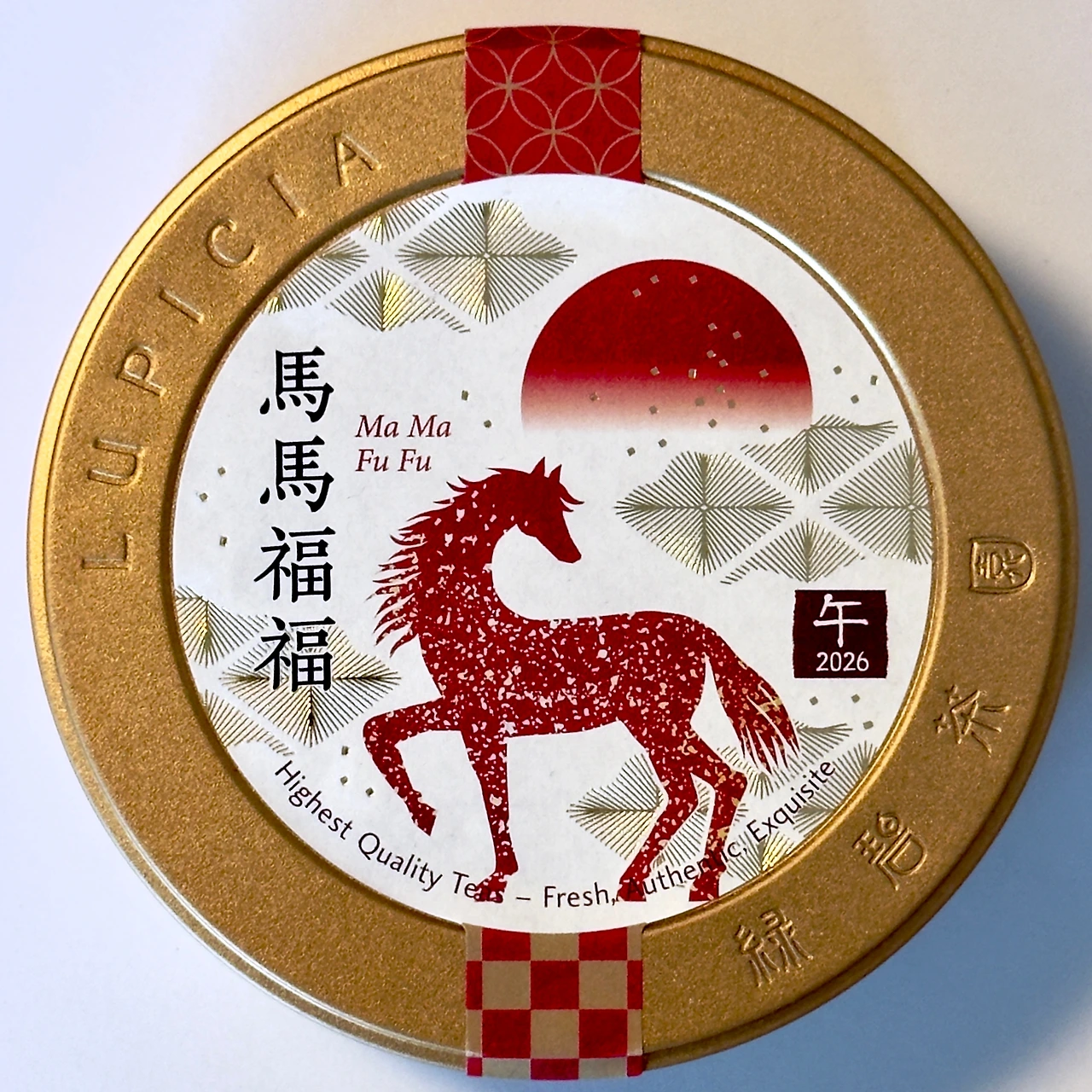 보통 신년을 맞이하여 간지(띠) 차를 마시는 건 부러부러 기다렸다가 설에 올리곤 하는데 올해는 좀 당겨서 마셔보게 되었다. 엄밀히 말하면 아직은 음력이 기준인 병오년은 아니기 때문에 말의 해라고 간지차를 마시는 게 영 적응이 안 되긴 한단 말이지. 하지만 이제는 차 호더라고 놀림받아도 할 말이 없을 정도로 차를 쟁여둔 25년을 지나 26년에는 차를 좀 빨리 마셔서 정리하자는 목표(?)를 세웠기 때문에 자리를 크게 차지하는 한정 틴부터 얼른 따서 마시기 시작했다. 말의 해를 맞아 루피시아에서 출시한 간지차를 작년에 진즉 구매했다. 간지차는 작년에도 봉입을 따로 팔지 않아 한정 캔을 두 개씩 사야 하는, 가격도 곤란하고 캔이 자리도 많이 차지하는 곤란함도 겪어야 해서 딱 한철에만 구할 수 있다는 압박감이 꽤나 스트레스로 다가온다. 아무튼 50g 한정 캔이 1500엔으로 상미기한은 2년이지만 까자마자 1주일 안에 마셔보도록 하겠다.