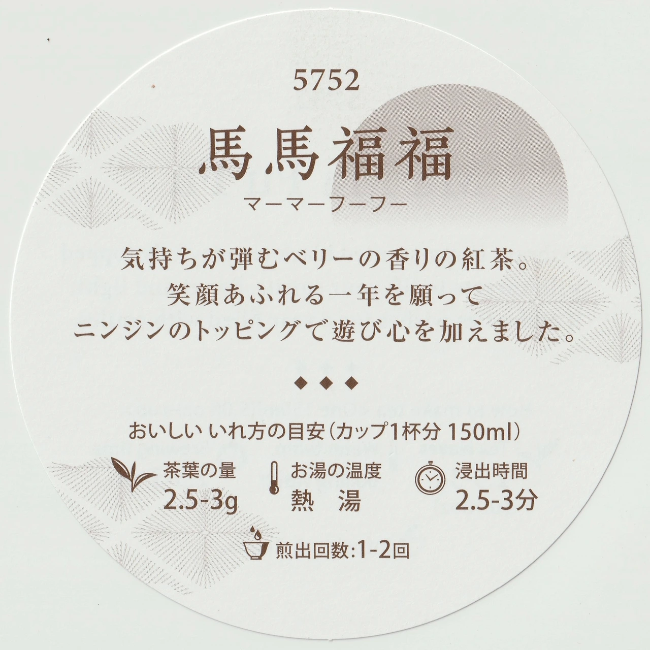 중국어에 마마후후라고 말말호랑이호랑이라는 말이 있는데 대충대충이란 뜻이라고 한다. 중국어 하시는 분들은 마마후후라는 발음을 보자마자 중국어에서 따온 건가 보다 하고 바로 알아차리시던데 루피시아의 작명 스타일로 보았을 때 맞는 말인 것 같다. 게다가 홈페이지에도 이 차를 소개하면서 힘을 빼고 웃음 가득한 한 해를 보내자는 의미라는 말이 있던데 그런 걸로 봐선 그쪽의 말장난이 확실한 듯. 당근 토핑을 올린 홍차라고 하니 철저히 개그를 노린 블렌딩과 이름이 맞는 것 같다.
