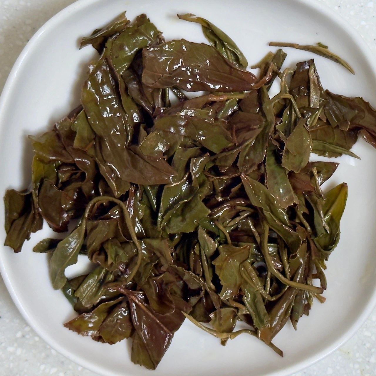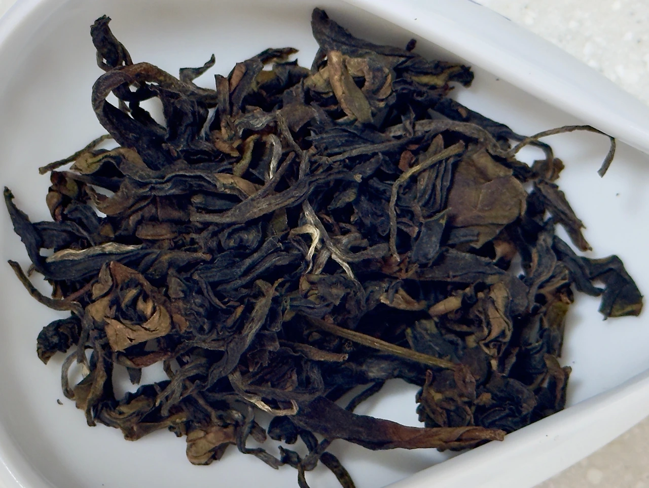 봉투를 열어 건엽의 향을 맡아보면 그냥 묵은 나물의 느낌으로 큰 기대감은 들지 않는다. 어찌 보면 에잉 이게 뭐야 싶을 정도. 진짜 무청 말린 듯한 나물의 향기이지 낙엽스러운 향은 절대 아니다. 뭐라도 스페셜한 거 없나 싶어서 건엽을 덜어내어 본다. 겉모습도 그냥 일반적인 동아시아의 홍차 느낌. 꼬여 있는 갈색빛 찻잎들이 특별히 화려하거나 하지는 않다. 이러면 나가린데 이거.