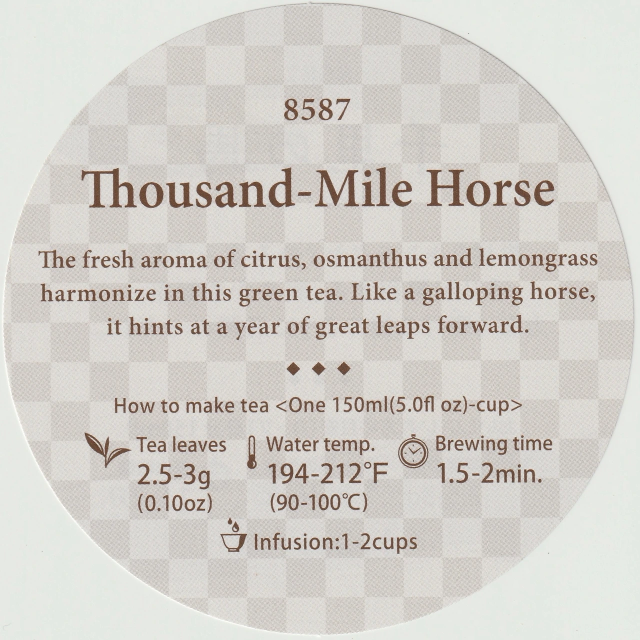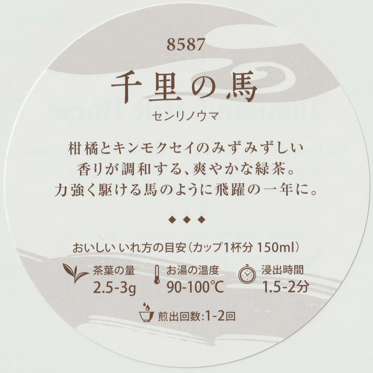 감귤과 금목서의 싱그러운 향이 조화를 이루는 상쾌한 녹차. 힘차게 달리는 말처럼, 비약의 한 해의.