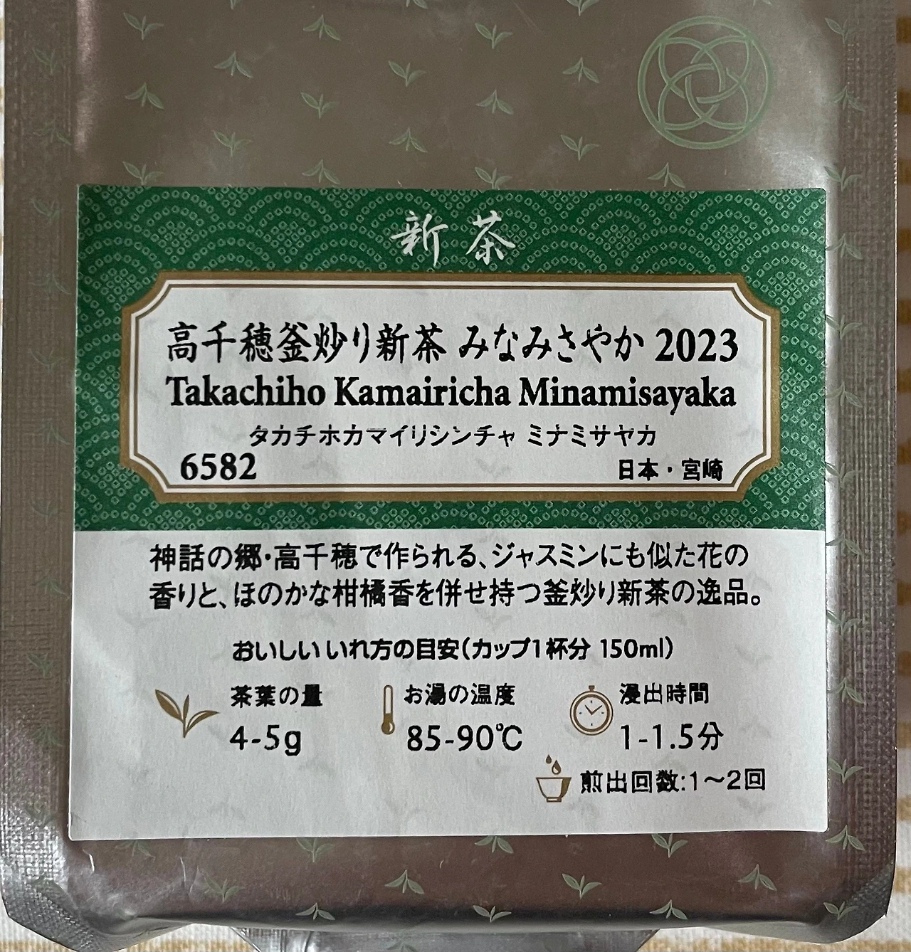 지난번 마셨던 고카세 다원에서 근처의 강을 따라 내려오면 타카치호라는 동네가 나오는데 오늘 마셔볼 차는 바로 그 타카치호의 녹차이다. 특히나 미나미 사야카라는 품종을 사용한 녹차인데 애초에 덖음차에 적합하도록 개발된 품종으로 달달하게 자스민향 같은 꽃내음이 나는 것으로도 유명하다. 미나미 사야카는 요즘은 녹차보다는 우롱차나 홍차 쪽으로 산화를 좀 시켜서 판매하는 경우가 많은 것 같다. 새로 개발된 품종으로 만든 차라고 하니 궁금하지 않을 수 없다. 한국 녹차밭의 품종들이 대부분 일본에서 들여왔던 걸로 알고 있기 때문에 한번 비교해보고 싶기도 하고. 수량 한정이라 일단 담고 보부상님께 구매를 부탁드려 봤다. 50g 봉입에 1400엔. 루피시아에선 꽤나 높은 가격대에 속한다.