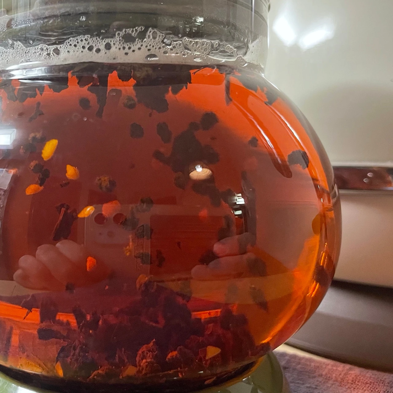 5g, 300ml, 100도의 물에서 2분 우려내었다. 핑크페퍼와 아몬드 조각, CTC가 정신없이 점핑을 한다. 빠아알갛게 물들어가는 티팟. 할로윈 마녀가 뭔가를 끓이는 분위기라서 사진을 참을 수 없었다. 참고로 밀크티용으로 농도를 짙게 우려내면 수색이 더욱 붉어져서 따라낼 때 레드와인처럼 붉은빛이 나는 느낌이다. 으흐흐흐 할로위이이인~~~