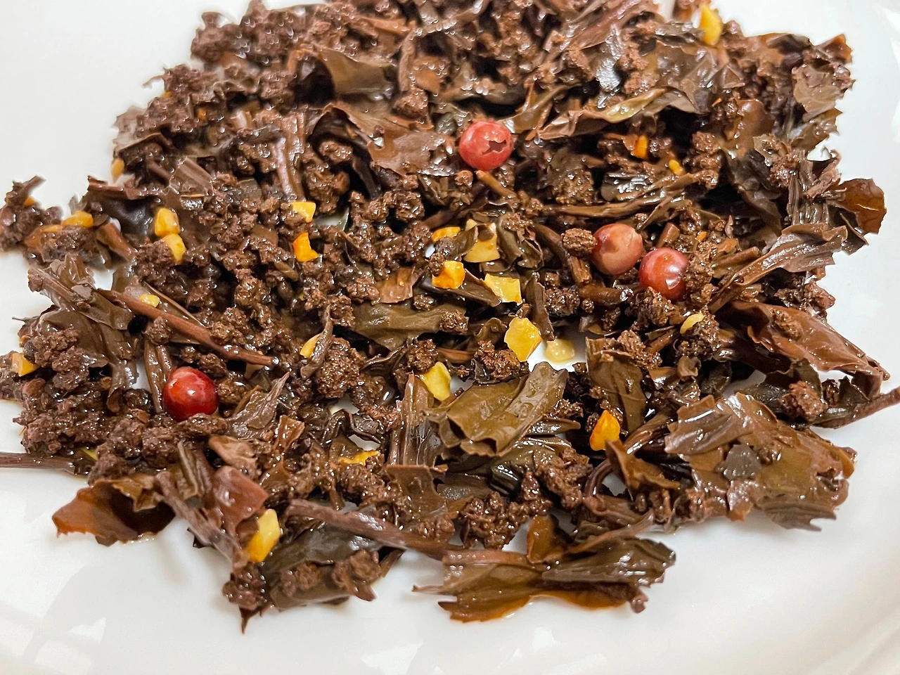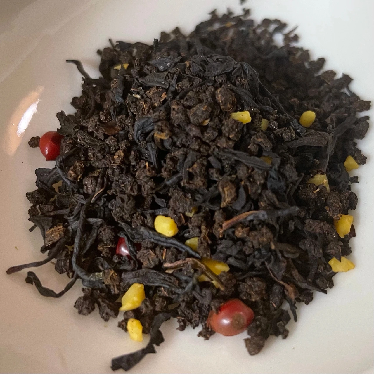 개봉하자마자 아닌 게 아니라 쿠키향이 짙게 확 올라온다. 캬라멜 가향에 오레오 쿠키 같은 가향도 한 거 같고 약간 너티한 향도 많이 들어가 있다. 가장 먼저 눈에 띄는 건 빨간 핑크페퍼인데 루피시아의 단골 블랜딩 재료로 스파이시한 느낌을 주기 위한 후추 같은 존재랄까. 토핑의 색감을 화려하게 만드는 역할도 해주고 있다. 노오란 밤조각 같은 아몬드 조각들이 핑크페퍼와 함께 알록달록 건엽을 화려하게 장식한다. 홍차의 원산지는 케냐와 아쌈으로 케냐 브로큰에 아쌈 CTC가 섞여있는데 아쌈이 좀 더 많은 거 같기도 하고 비슷한 비율인가 싶기도 하고. 색감 자체가 벌써 가을가을 하다.