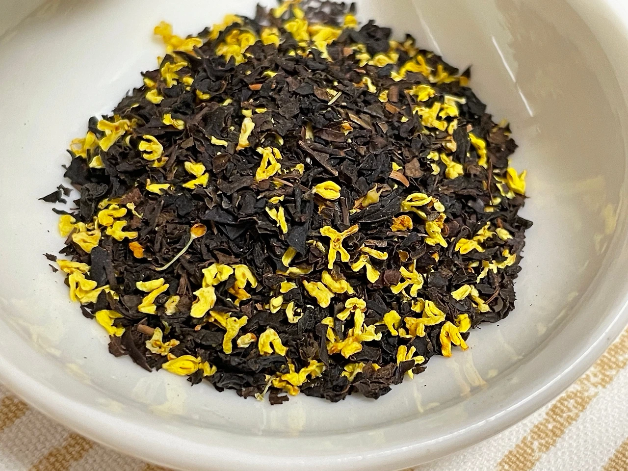 화려한 금목서 꽃잎을 홍차에 듬뿍 블렌딩 합니다. 달콤하고 향기로운 향과 그 여운.