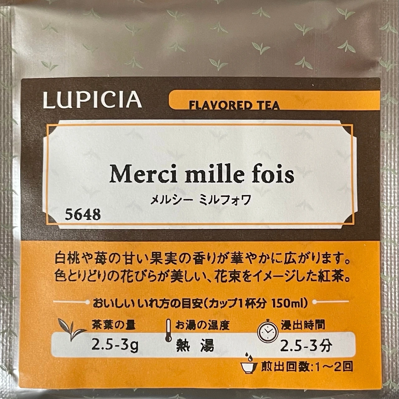감사절의 분위기는 이렇게 연말 분위기의 커다란 한 축을 담당하는데 루피시아에서는 그래서인지 연말 특집에 항상 이 메르시 밀 포아를 함께 넣는 것 같다. 블랜딩 자체는 레이와 연호를 기념하여 발매된 것으로 감사절과는 아무 연관이 없습니다만, 언젠가부터 꼭 감사절 시즌에 이 티를 함께한 동료들이나 고마운 사람들과 함께 나누고 싶었다. 그래서 늦가을 차를 마련하겠다고 이거 저거 담다가 메르시 밀 포아도 담아두었는데 이렇게 크리스마스 시즌 한정이 금방 나올 줄은 몰랐지. 정신 차려보니 일반 봉입 하나, 2023 한정일러 하나 이렇게 두 개가 생겨버렸다. 50g 봉입 780엔, 50g 한정일러 1160엔, 상미 2년이다.