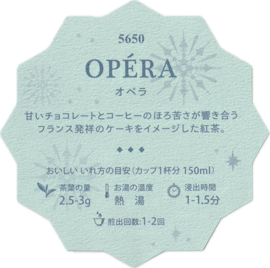 루피시아 본점 만큼이나 꼭 가보고 싶은 그랑 마르쉐. 덕후의 심장을 뛰게 만드는 홍차 대 축제. 그랑 마르쉐는 쉽게 말해 루피시아에서 개최하는 홍차박람회 같은 행사인데 그랑 마르쉐에서만 한정 판매하는 홍차들도 있고 새로운 블랜딩을 실험적으로, 마치 파일럿 돌려보듯 판매해 보기도 하기 때문에 갈 순 없어도 꾸준히 눈팅은 하게 만드는 그런 행사이다. 제가 홍차라고만 적었나요? 물론 다른 차들도 있습니다. 본심이 무심코 드러나고 말았군. 오늘 마셔보는 오페라도 원래는 그랑 마르쉐 한정으로 나왔다가 정규 라인업에 편성된 신규블랜딩이다. 정규편성 작년에도 되었던 거 같은데 홈페이지 설명에는 마치 올 겨울에 막 들어온 것처럼 되어있네. 아무튼 주변에서 마시는걸 예전부터 여러 번 보아왔는데 이번에 한정 일러가 나온 김에 냅다 장바구니에 넣었다. 참고로 오페라와 같이 그랑 마르쉐에서 상시로 넘어온 프레지에도 구매완료 해두었다. 오페라는 한정 일러 50g 캔에 1060엔, 일반 봉입으론 680엔이다. 상미기한은 2년.